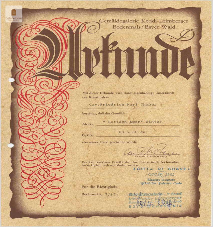 W Galerie Doris stosujemy sztywne i rzetelne reguły wystawiania dokumentów, ponieważ wierzymy w odpowiedzialność za słowo pisane. Pragniemy ostrzec przed praktykami niektórych galerii, które sugerują, że sprawdzenie dostępności certyfikatu do konkretnego obrazu jest zbędne, gdyż "wszystko u nich jest oryginalne". Argumentują to faktem, że obrazy są namalowane ręcznie – również te niezidentyfikowane. Jest to bezwartościowy dodatek marketingowy, mający na celu jedynie zwiększenie zysku sprzedażowego gdyż wystawiają certyfikat na obrazy niezidentyfikowane.