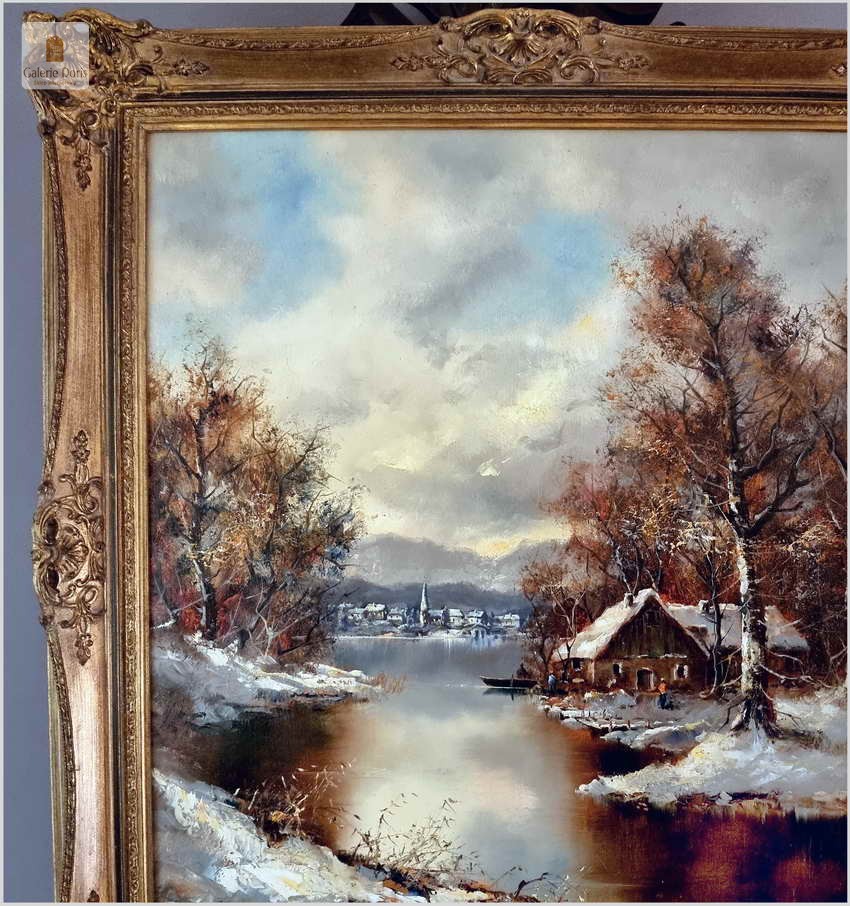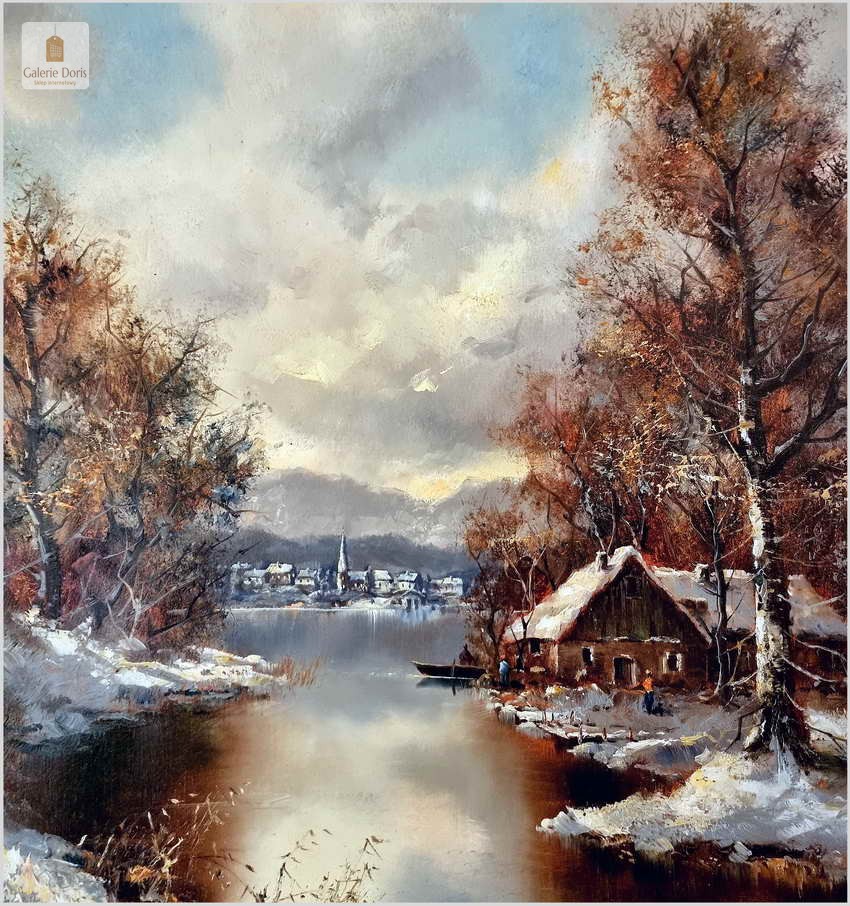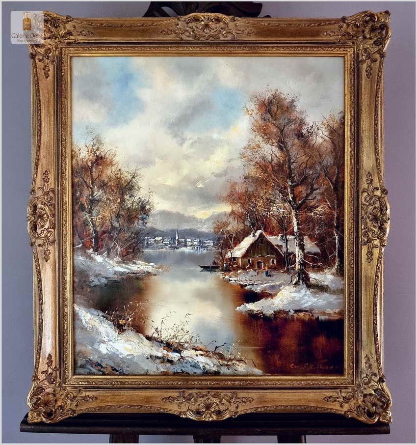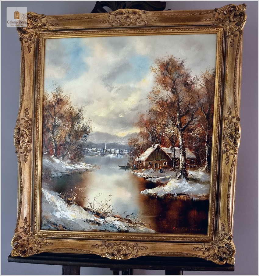 Malarstwo szpachlowe! Zimowy pejzaż wiejski - Friedrich Karl Thauer (1924-2009)