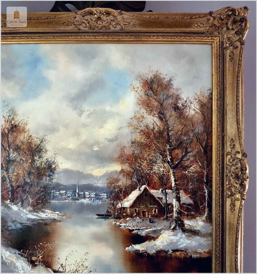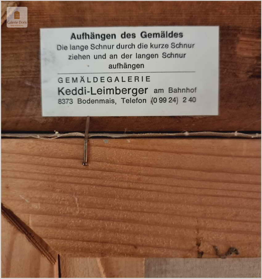 Obraz w bardzo dobrym stanie wizualnym i technicznym z dokumentacją oraz certyfikatem z oryginalnym podpisem i pieczątką malarza. Obraz przedstawia widok na Rottach Egern w Bawarii od strony ujścia rzeki do jeziora. Zachwycająco oddał plastyczność malowanego otoczenia, całość podkreślona została finezyjnymi efektami światłocieniowymi a także wyśmienitą grą niuansów barwnych. Ten subtelnie malowany obraz cechuje znakomita technika malarska. Oprawę malowidła stanowi przestrzenna, gruba rama wykonana z drewna. Złoconą ramę bogato dekorują kunsztowne sztukaterie. Gwarantujemy profesjonalnie zabezpieczoną przesyłkę kurierem. Obraz malowany w technice pędzla i szpachli. Widoczna grubo nakładana farba. Do obrazu duża A4 broszura oraz niemiecki certyfikat ze renomowanej galerii Keddi w Niemczech. Polecamy!