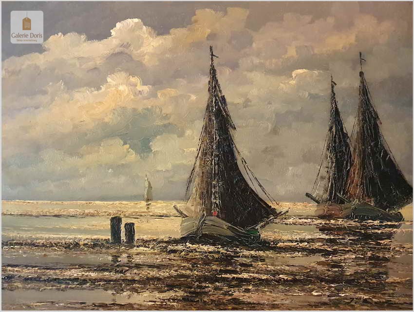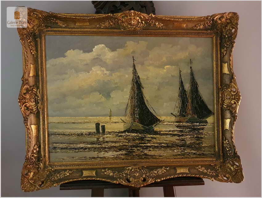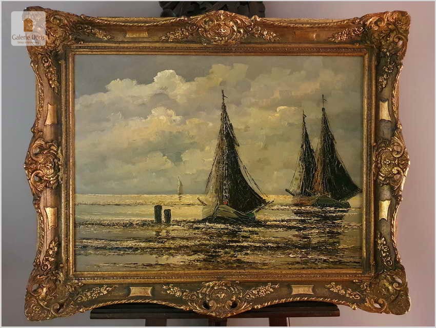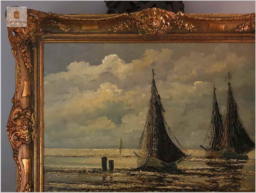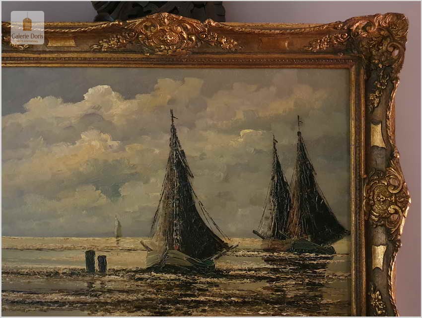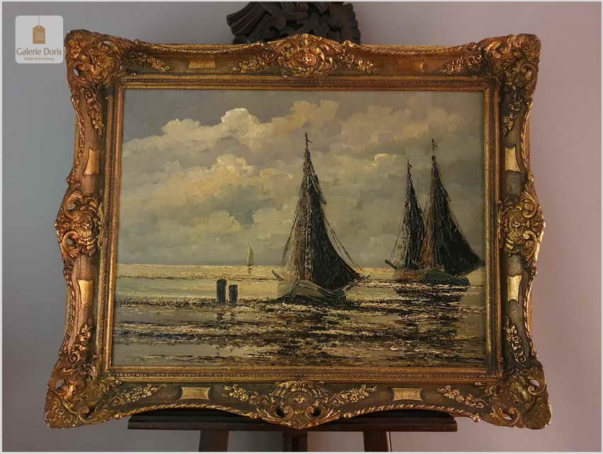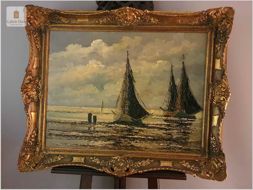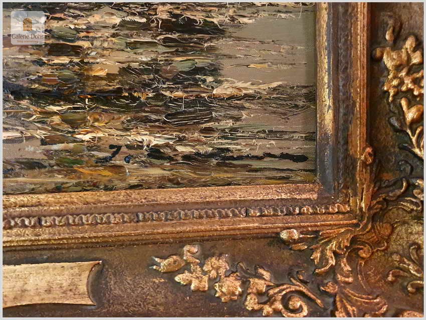 Jean Coune malował różnego rodzaju motywy. W jego twórczości przeważają jednak motywy marynistyczne. Jean Coune, uczeń prof. Helmuta Lieseganga, technika malarska pędzel, szpachla. Jego styl malarski wyróżnia się przede wszystkim zastosowaniem techniki szpachlowej, którą uwypukla bardzo grubo kładzioną fakturę płótna. Jego prace często są spotykane na europejskich aukcjach. Ten obraz jest jego bardzo dobrą pracą z późniejszych lat jego twórczości. Piękną dodatkową ozdobą jest bardzo bogata rama o konstrukcji drewnianej zdobiona sztukaterią w stanie perfekcyjnym. Całość prezentuje się wspaniale. Będzie z pewnością pięknym eksponatem w Państwa kolekcji, domu. Polecamy stare przedwojenne malarstwo Jean Coune.