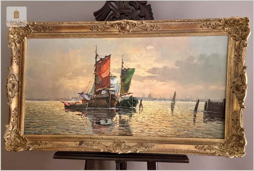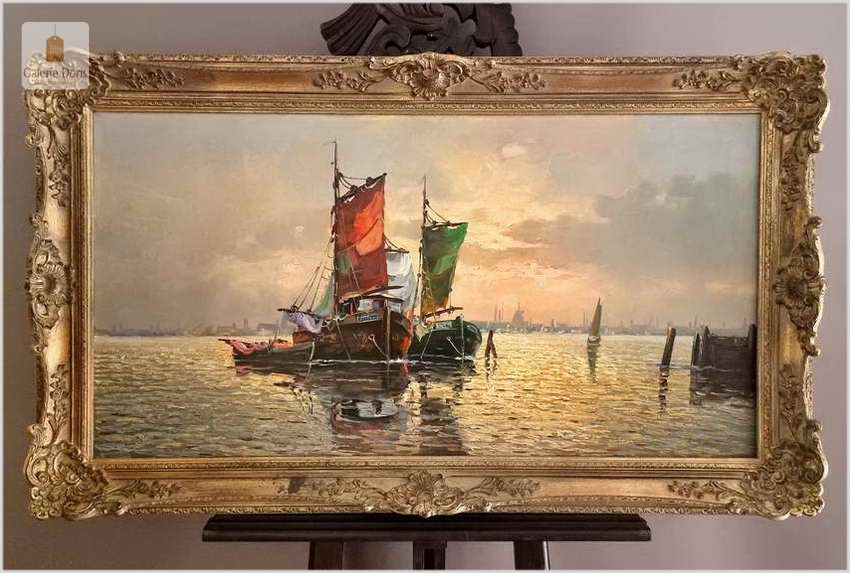 Mega Rarytas! Łodzie rybackie na lagunie - Carol Spree *1907 | XXL!