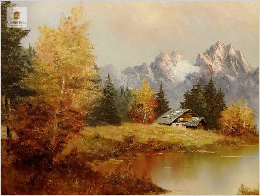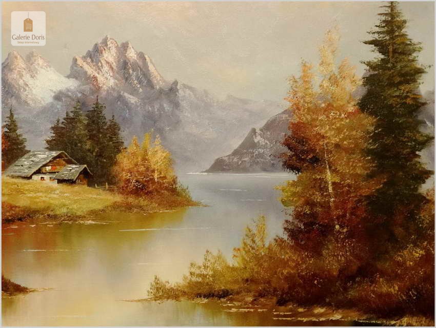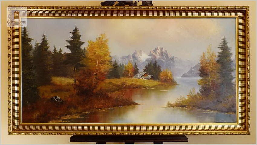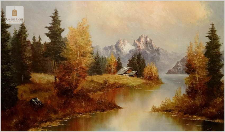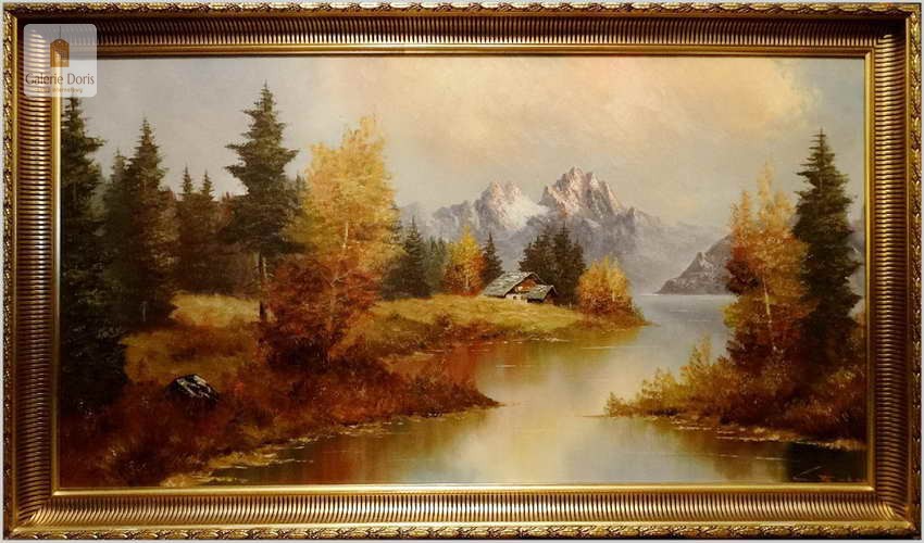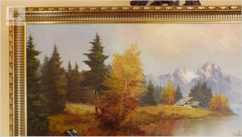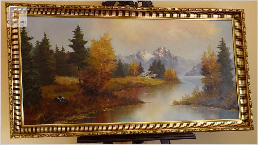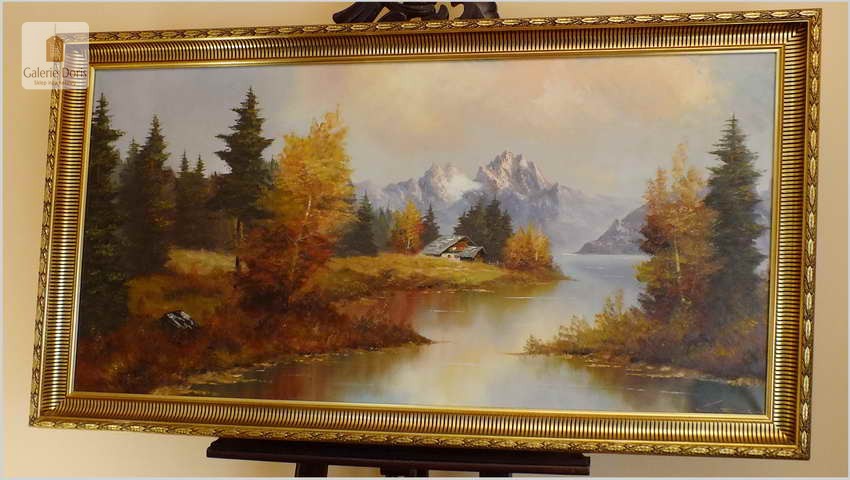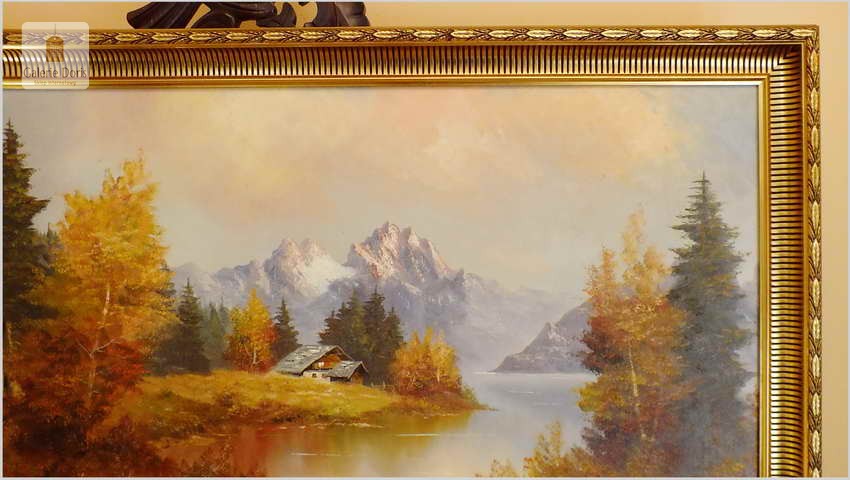 Obraz przedstawia niezwykle piękny romantyczny krajobraz. Subtelnie malowany duży obraz olejny na płótnie. Wspaniale oddano partię nieba oraz rozległy widok na otaczające go góry. Bardzo nastrojowa kompozycja. Pejzaż odznacza się delikatnie prowadzonymi liniami pędzla i wysmakowaną grą barw, cechuje go świetna technika malarska. Płótno posiada dwa minimalne uszkodzenia. Jego malarstwo było zawsze ozdobą i wzbudzało ogromne zainteresowanie szerokiej publiczności.