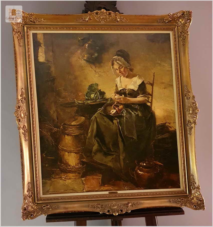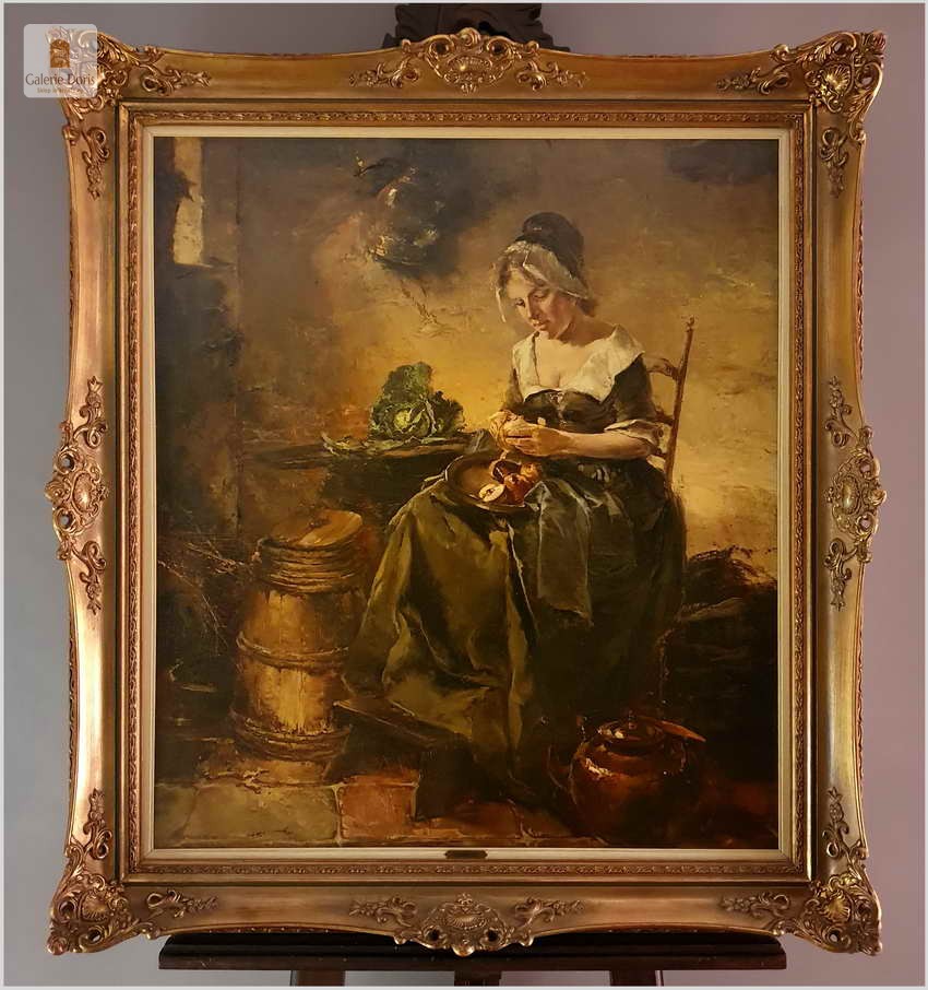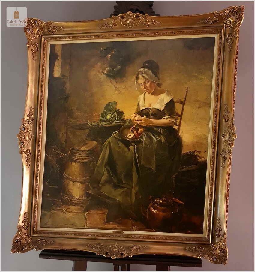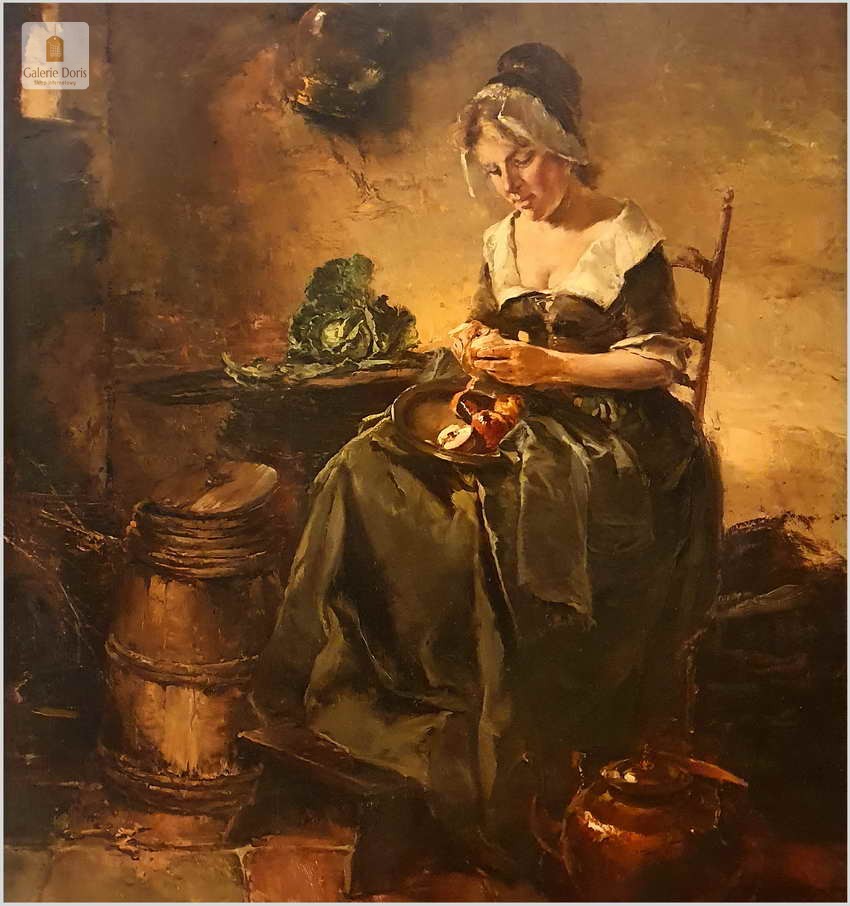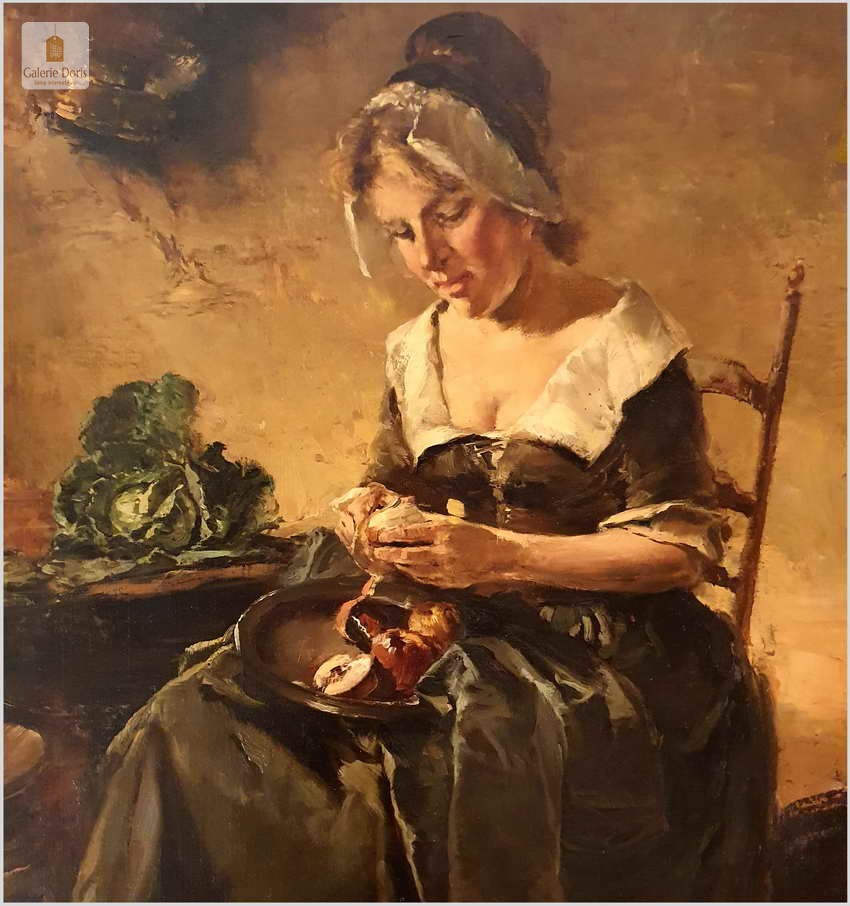 Notowane malarstwo! Gosposia obierająca jabłka - Dickmeis Gerhard (1918 -1978)