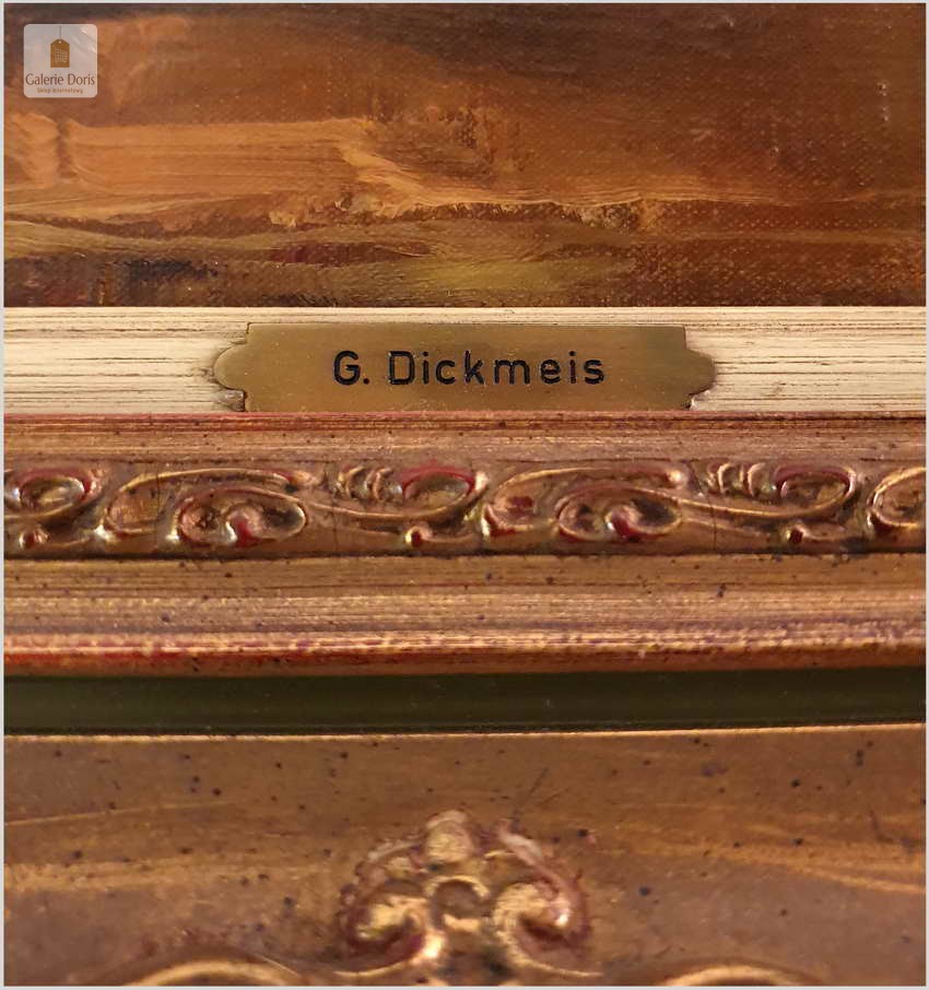 Biografia, (skrót) Gerhard Dickmeis (1918-1978): malarz niemiecki; studiował w Düsseldorfie. Malował pejzaże miejskie, portrety, martwe natury i przede wszystkim nie pozbawione humoru sceny rodzajowe o motywach i tematach chętnie podejmowanych przez artystów