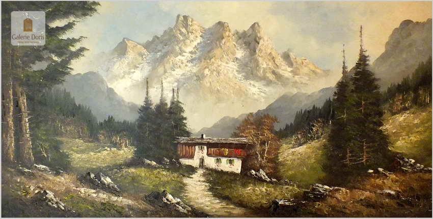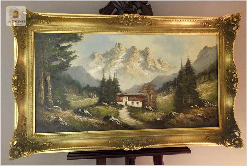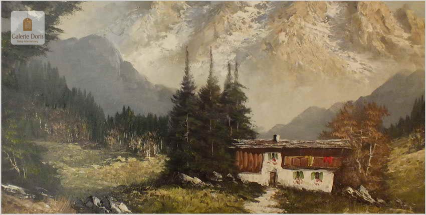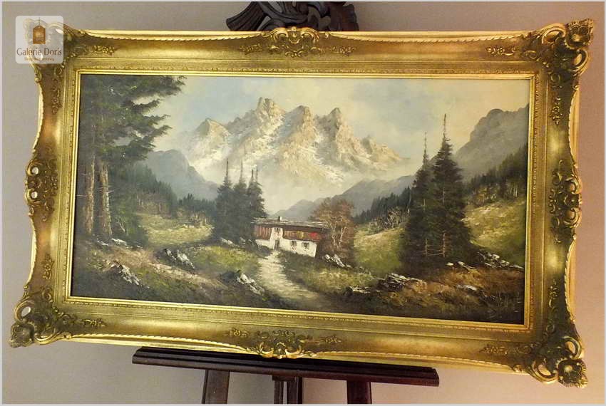 OKAZJA! PIĘKNA PANORAMA ALPEJSKA 100cmx50cm, TECHNIKA SZPACHLOWA - Heinz SCHOLZ (*1925)