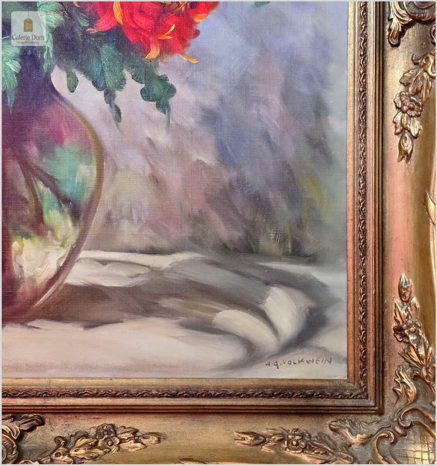 Obraz olejny! Piękne Dalie w szklanym wazonie - Helmuth Andreas Volkwein *1920