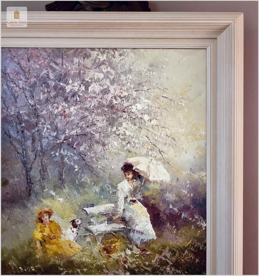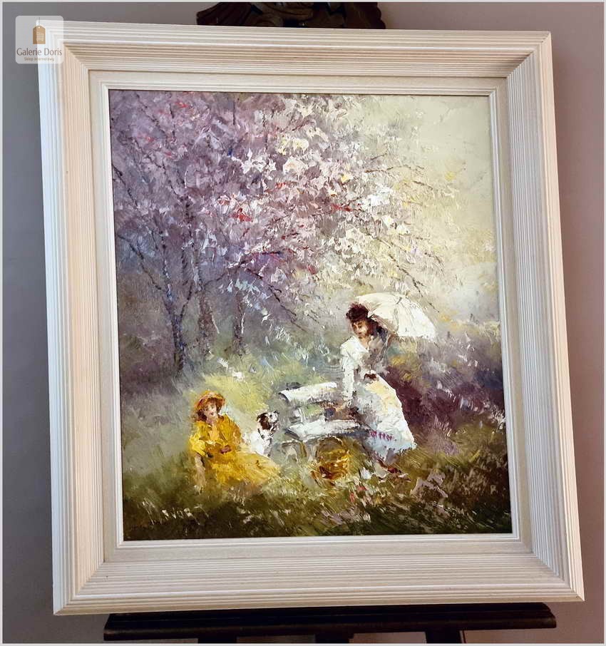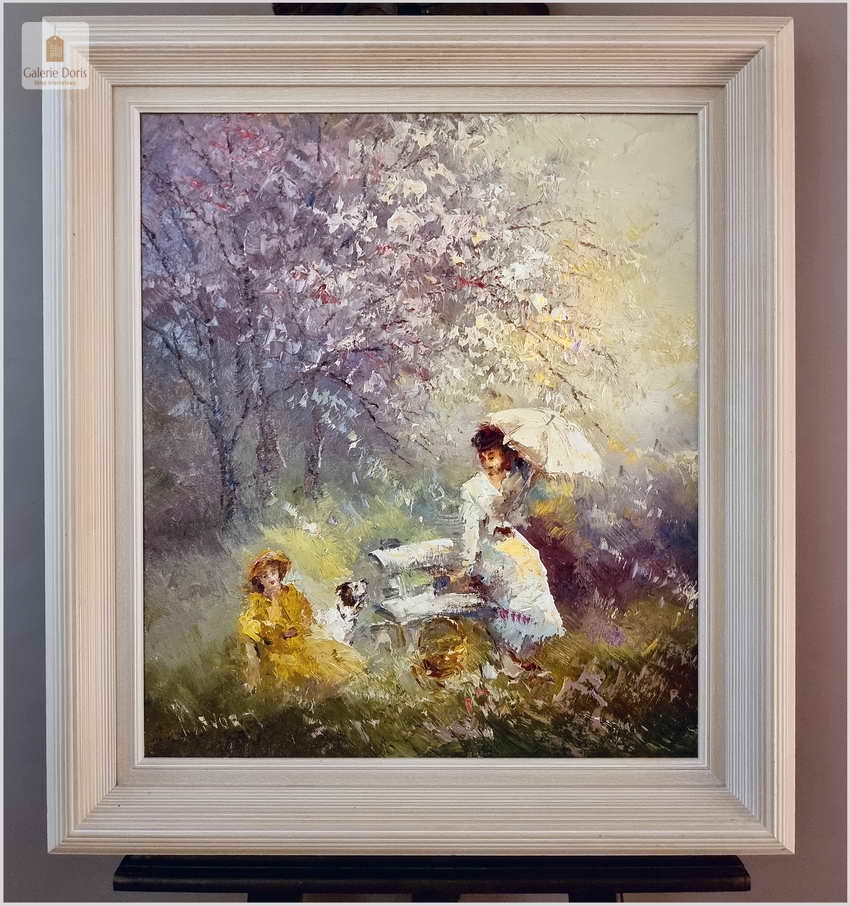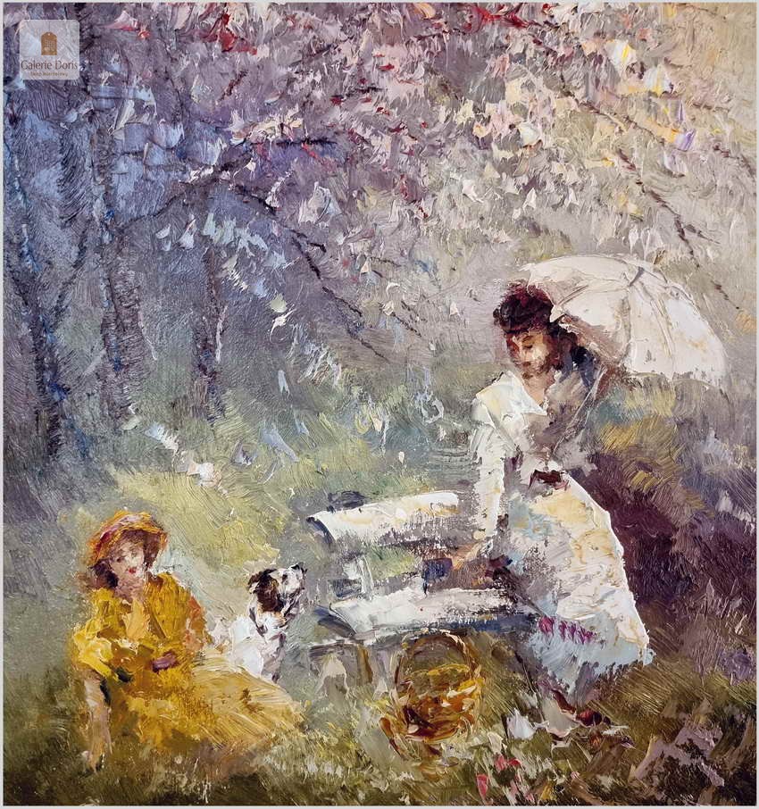 Obraz olejny do nowoczesnych wnętrz! Spacer w parku - John BÉVORT (1917-1996)