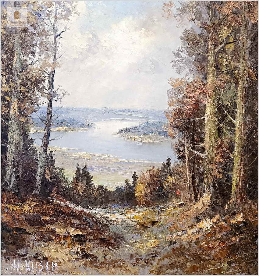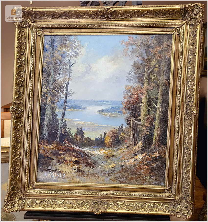 Obraz olejny pędzla Benno Stadlera / H.Nilsena znanego i cenionego malarza w Europie oraz za wielką wodą, głównie w Kanadzie i Stanach Zjednoczonych. Obrazy Stadlera jakże charakterystyczne, grubo nakładane - impasty dające piękne efekty światłocieni zwłaszcza wieczorami przy świetle lamp. Stadler urodził sie w 1908 roku w Monachium. W latach 1923-1926 pobierał nauki w szkole malarstwa u Profesora Rotha. W 1956 roku uzyskał uznanie tzw. pochwałe od specjalnej komisji do spraw malarstwa i sztuki pod przewodnictwem Profesora Carla Cordela. Malarz ten uznawany jest za jednego z największych i najwyżej notowanych malarzy połowy XXw. Stadler malował również pod pseudonimem - Nilsen. Obrazy Jego należą do rzadkości na rynkach dzieł sztuki co znacznie podnosi ich wartość. Dlatego też jest to prawdziwa okazja aby stać się posiadaczem tak cudownego malarstwa.