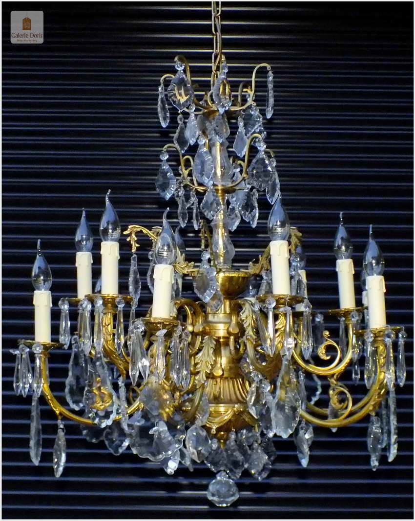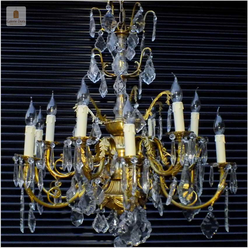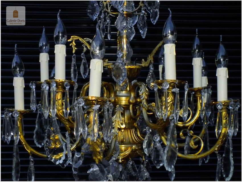 PAŁACOWY ŻYRANDOL MOSIĘŻNY Z KRYSZTAŁKAMI SWAROVSKIEGO - 12 PUNKTÓW OŚWIETLENIOWYCH (ANTYK!)