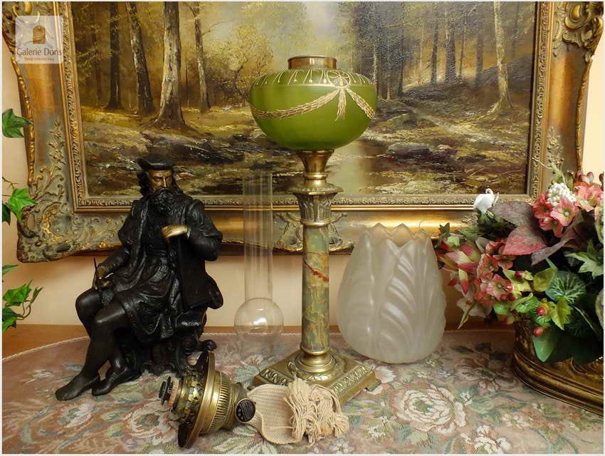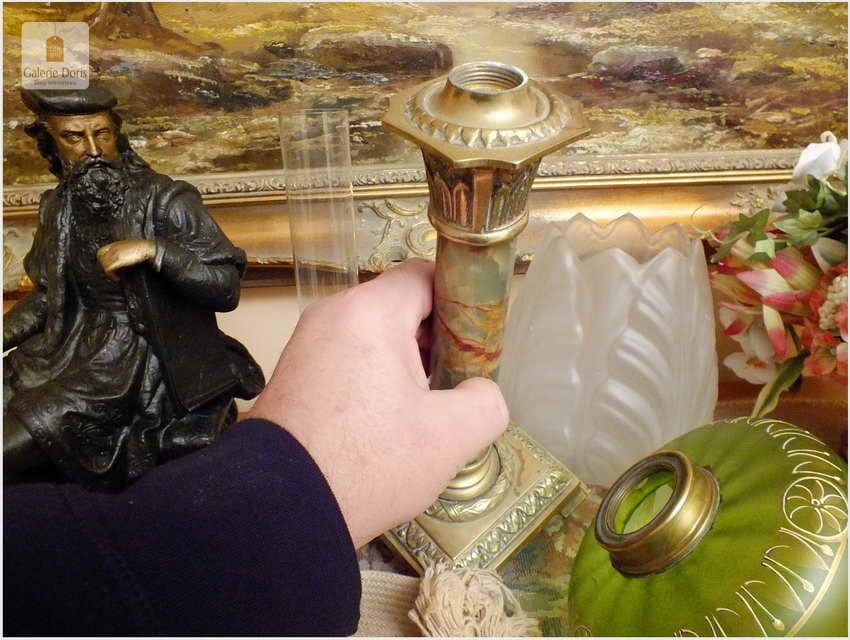 PIĘKNA SYGNOWANA LAMPA NAFTOWA Z ONYX - MATADOR 15"
