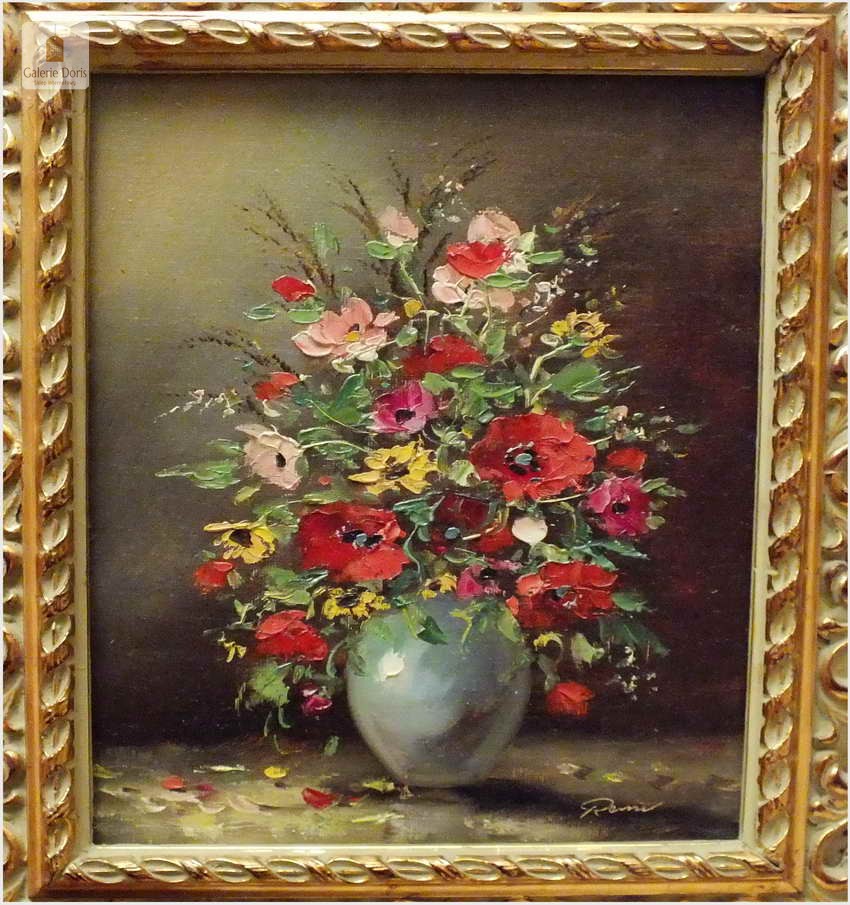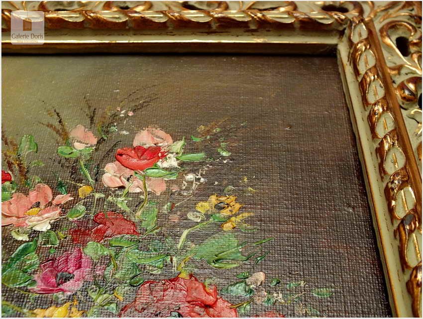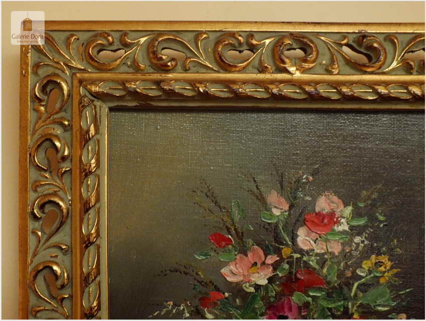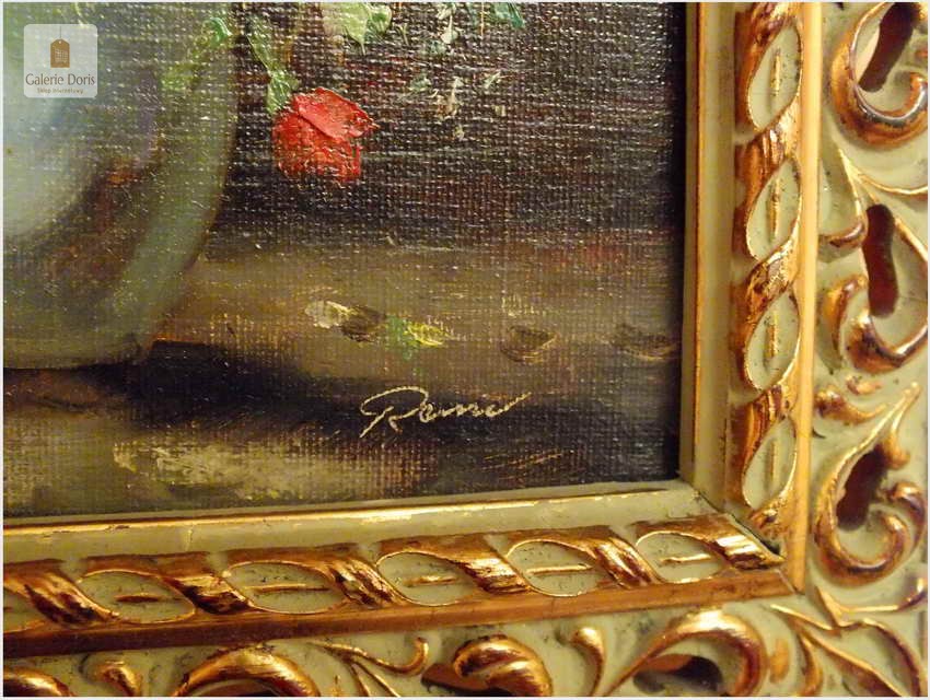 PIĘKNY BUKIET KWIATÓW W AŻUROWEJ RAMIE - sygn. Renier (XXw.)