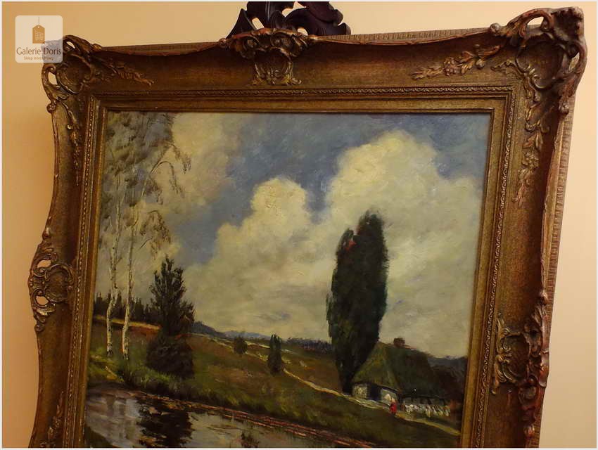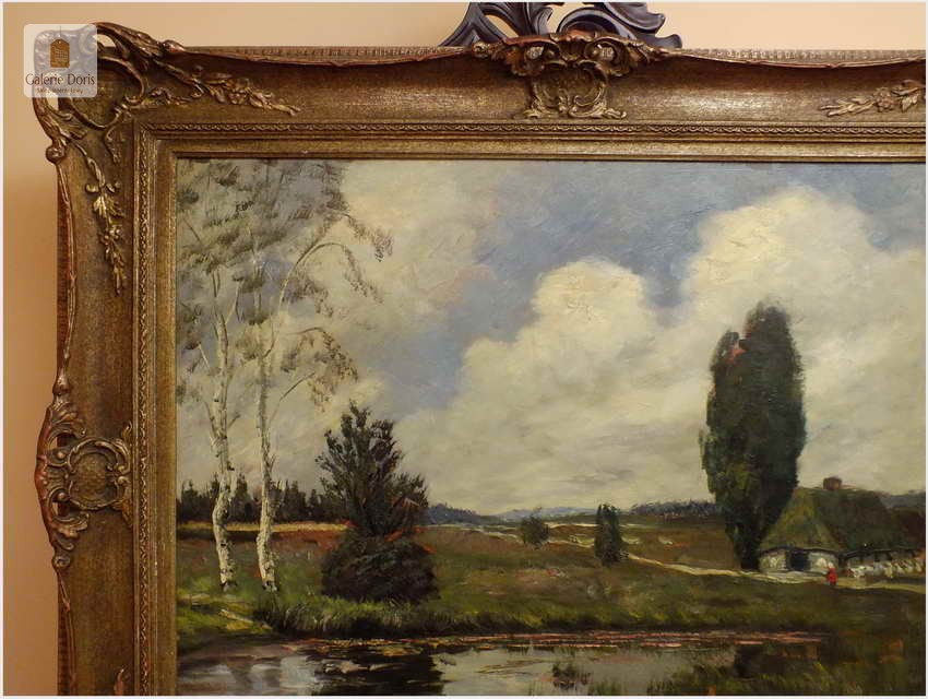 PIĘKNY KRAJOBRAZ W DUŻEJ BAROKOWEJ RAMIE ~ Carl Wilhelm Mosblech (1868-1934)