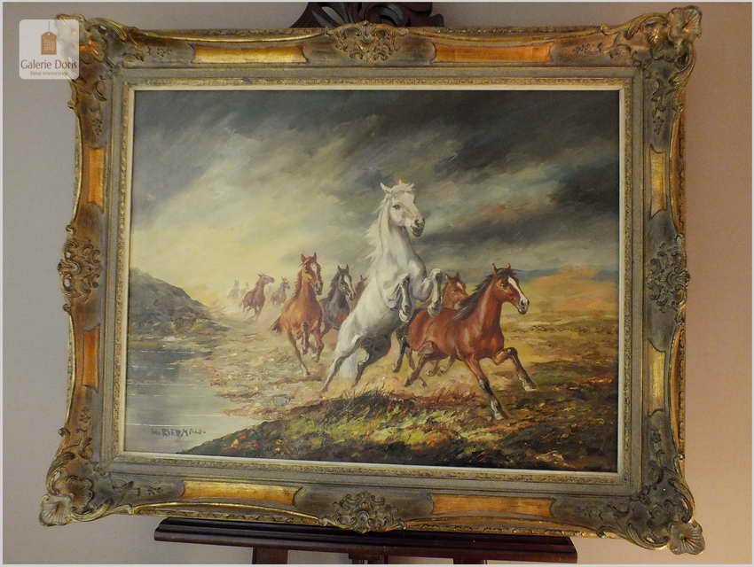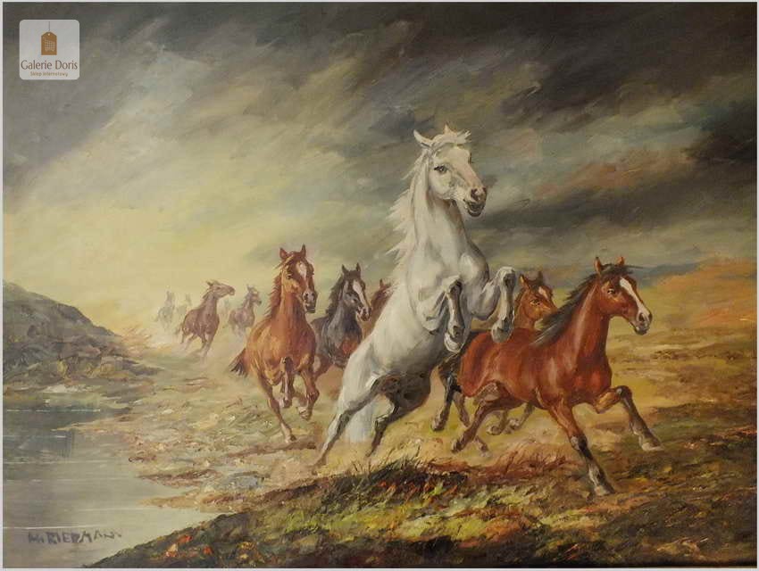 POLECAMY MALARZA ANIMALISTĘ! PĘDZĄCE DZIKIE KONIE - HANS RIEDMANN (1913-1991)