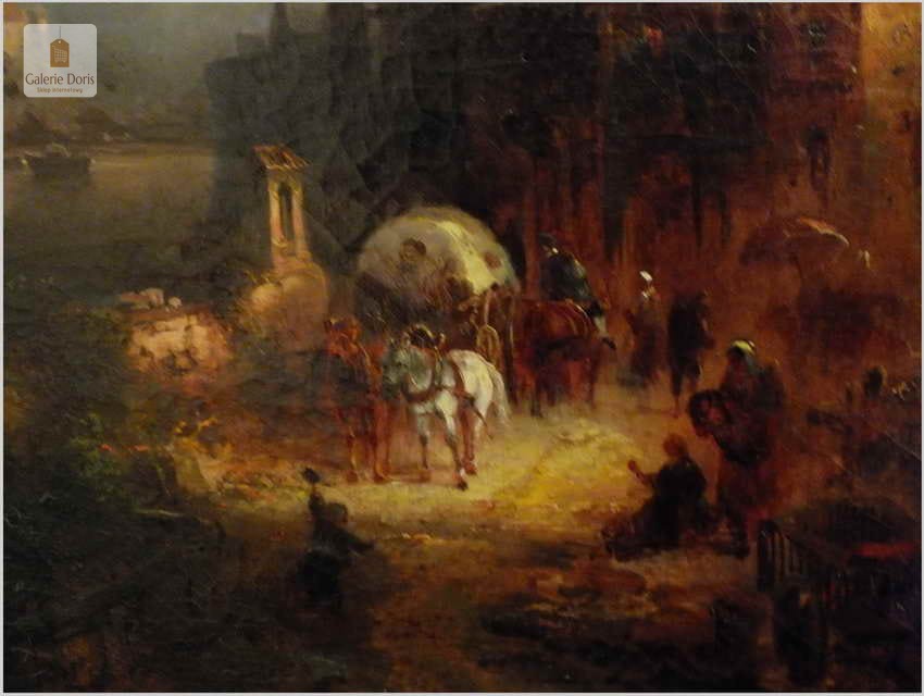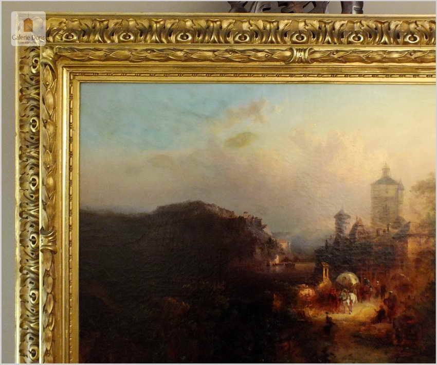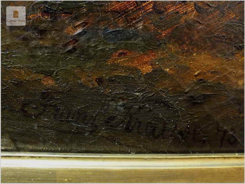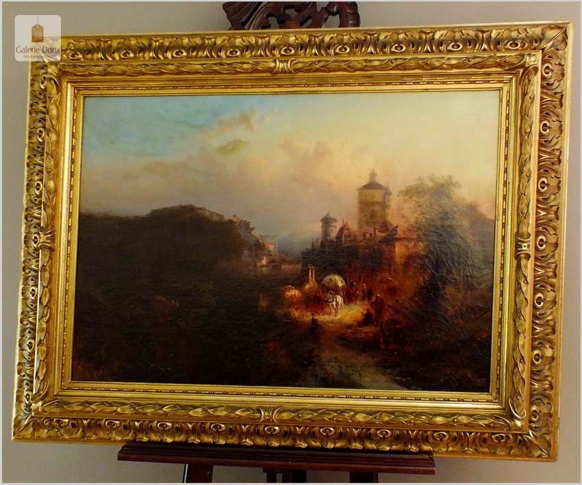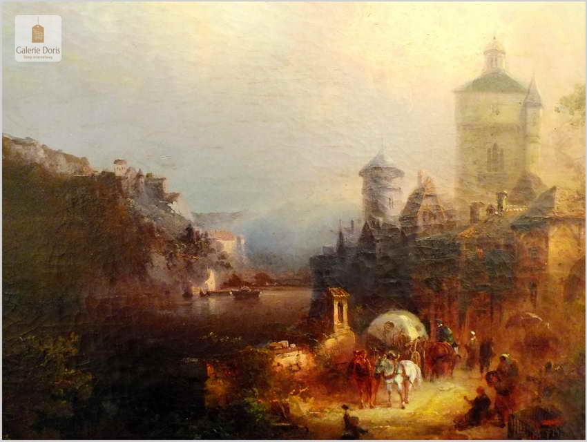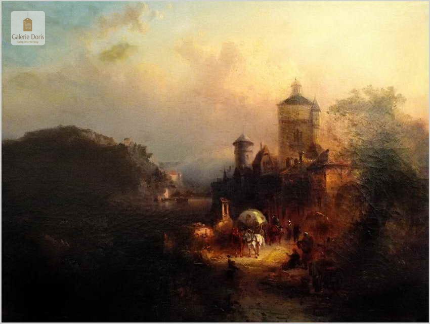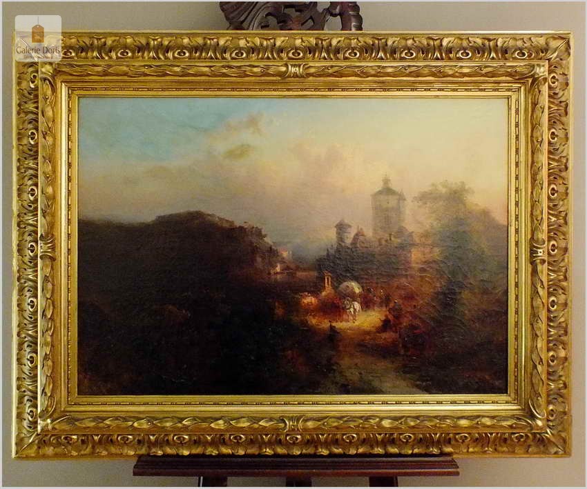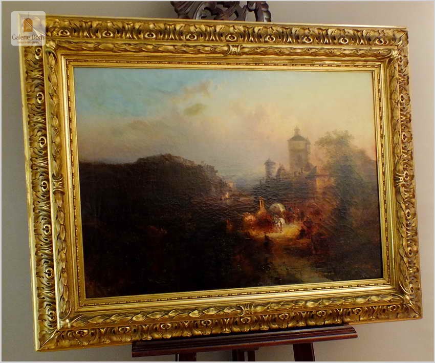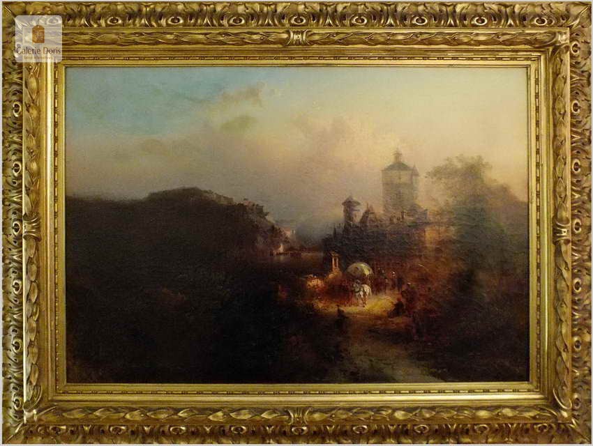 Obrazy artysty znajdują się, m.in. w zbiorach Muzeum w Rydze. Franz Emil Krause był aktywny w Niemczech oraz w Anglii. Franz Krause znany jest przede wszystkim z krajobrazu, malarstwa przybrzeżnego. Obraz sygnowany p.d Franz Krause 93. Na rewersie tabliczka z imieniem i nazwiskiem malarza oraz tytułem obrazu. Dodatkowo metryczka firmy ramiarskiej z Berlina. Polecamy!