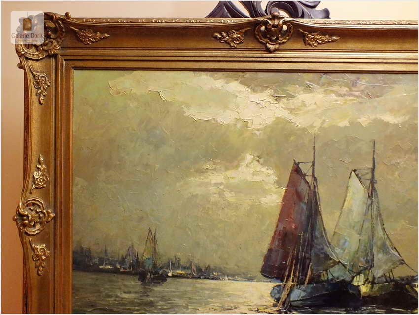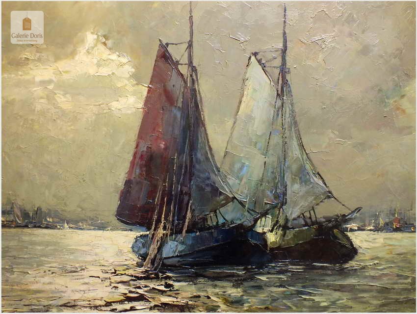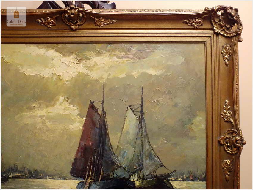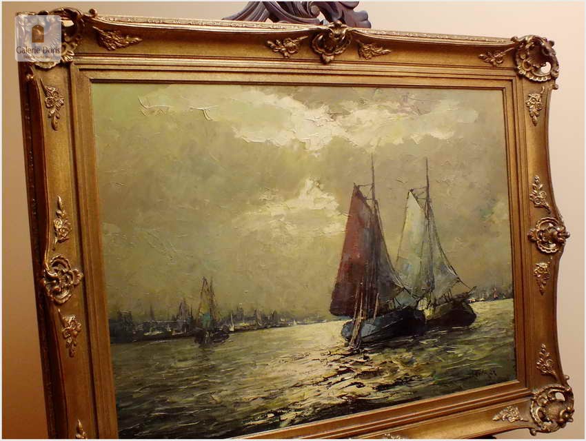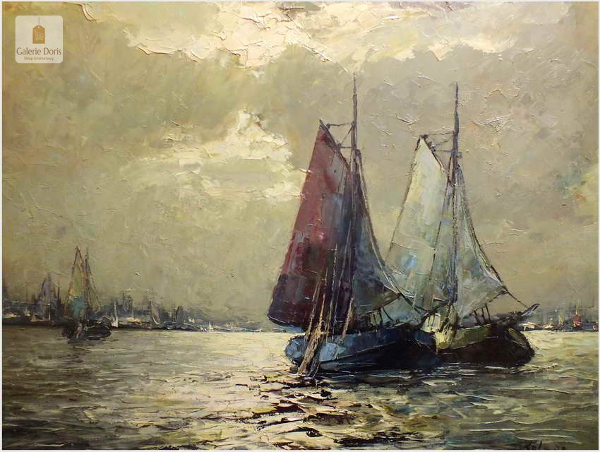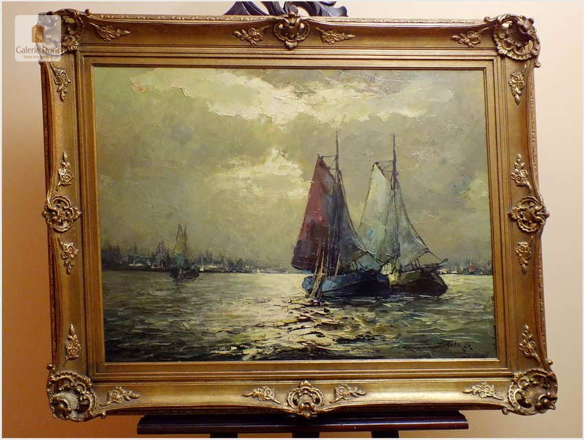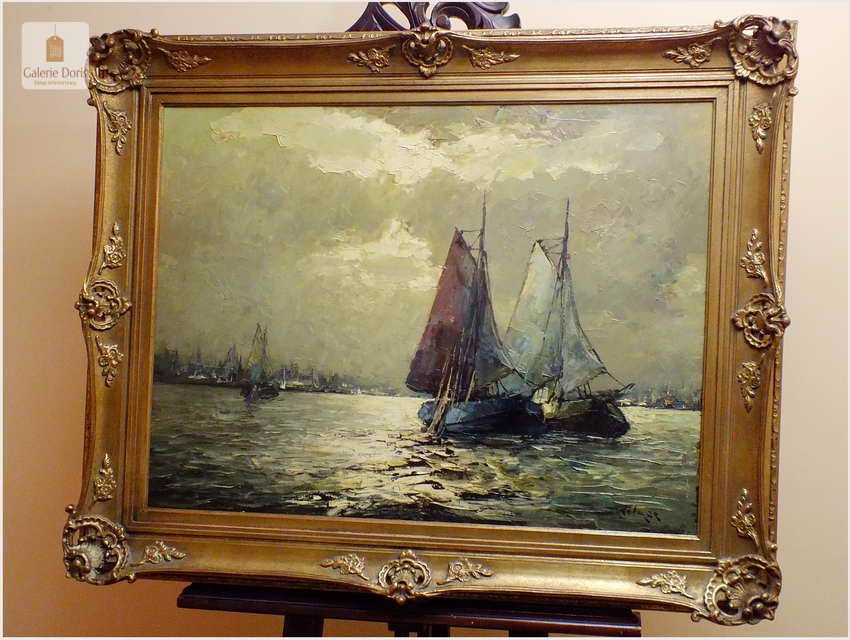 Duży obraz o tematyce marynistycznej znanego i cenionego malarza niemieckiego Helmut Kaluza, notowany na Artprice. Widoczny obraz to olej na płótnie o imponujących wymiarach, malarstwo fakturalne. Stan dobry, płótno bez uszkodzeń, Obraz sygnowany w rogu nazwiskiem malarza: H.Kaluza - Polecamy, świetna inwestycja, cudowna ozdoba! Całość prezentuje się wspaniale. Mistrzowskie posunięcia pędzla oraz doborowa kolorystyka odbicia na wodzie blasku księżyca, czyni obraz wielce dekoracyjnym. Należy tu wspomnieć, że obrazy z rodzaju nokturnu - Nokturn (z łac. nocturnus – nocny, od nox, noctis – noc) – obraz przedstawiający scenę nocną (...), zazwyczaj malowane są w ubogiej tonacji kolorystycznej, dlatego po tę tematykę sięgają tylko bardziej utalentowani malarze. Oferowany obraz będzie z pewnością pięknym eksponatem w Państwa kolekcji, domu.