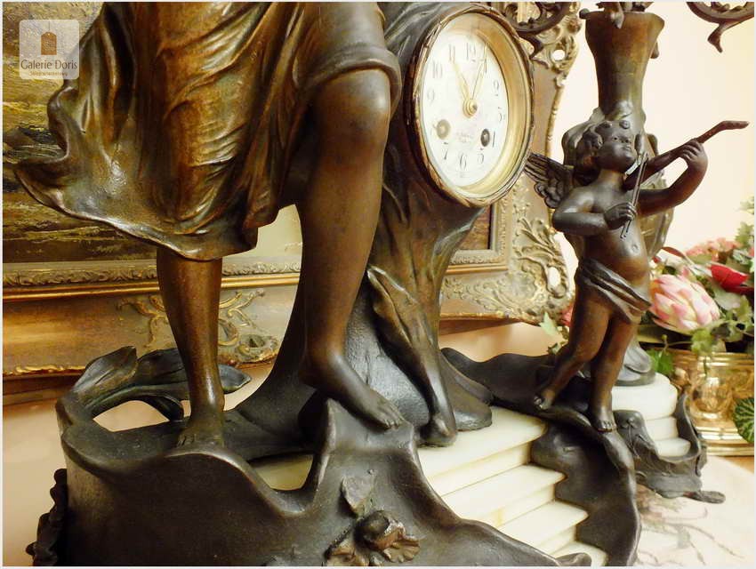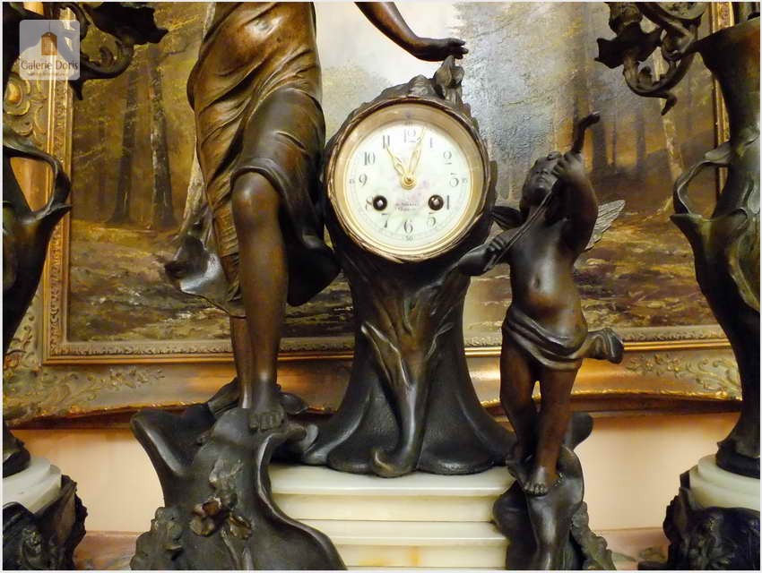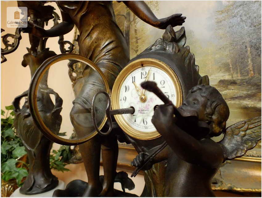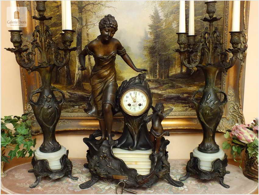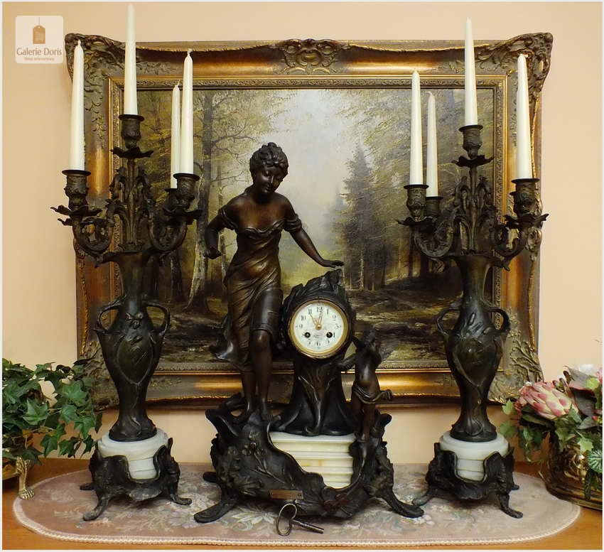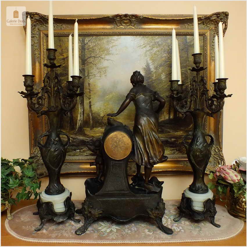 POLECAMY! PAŁACOWY ORYGINALNY ZEGAR Z KANDELABRAMI ART NOUVEAU 1900r.