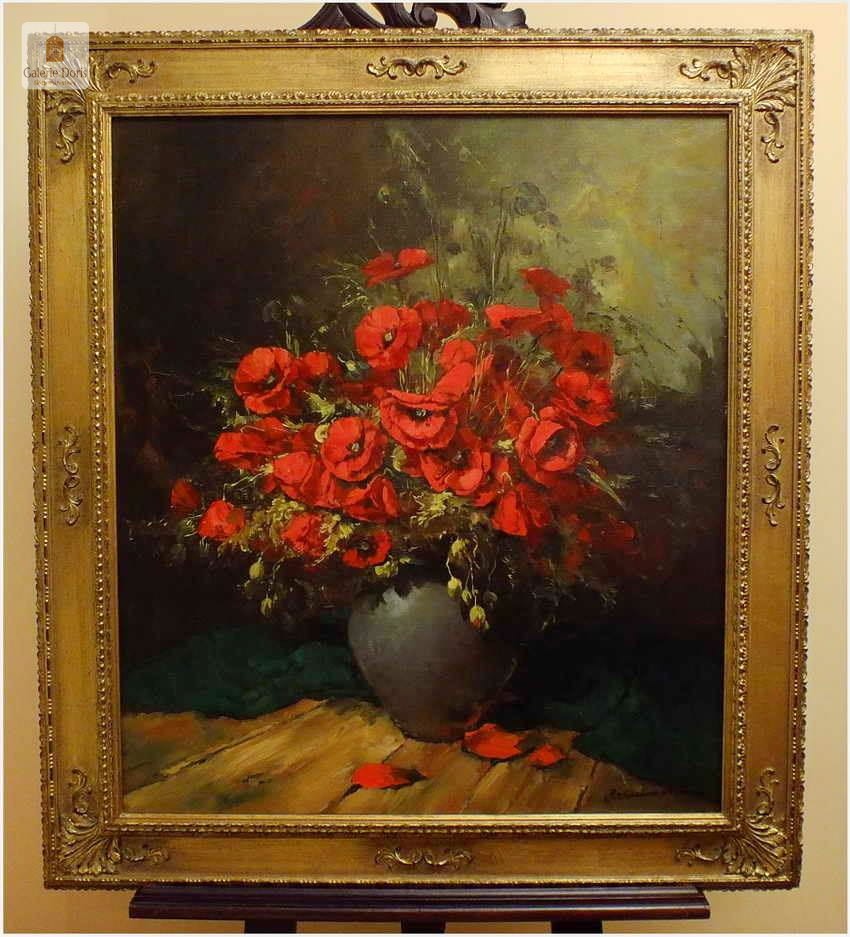 Obraz z połowy XX wieku, znanego artysty niemieckiego Gerharda Dickmeis, którego obrazy wystawiane są w liczących się galeriach malarstwa na całym świecie. Polecamy! W Polsce jego prace są znane i cenione. Bardzo dekoracyjny obraz. Na życzenie do obrazu dołączamy zaświadczenie z Galerii zabezpieczone numerowanym hologramem - Stan obrazu bardzo dobry. Gwarantujemy profesjonalnie zabezpieczoną przesyłkę kurierem.