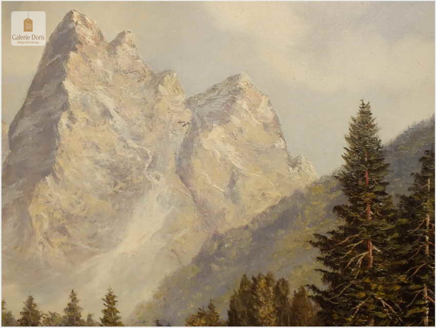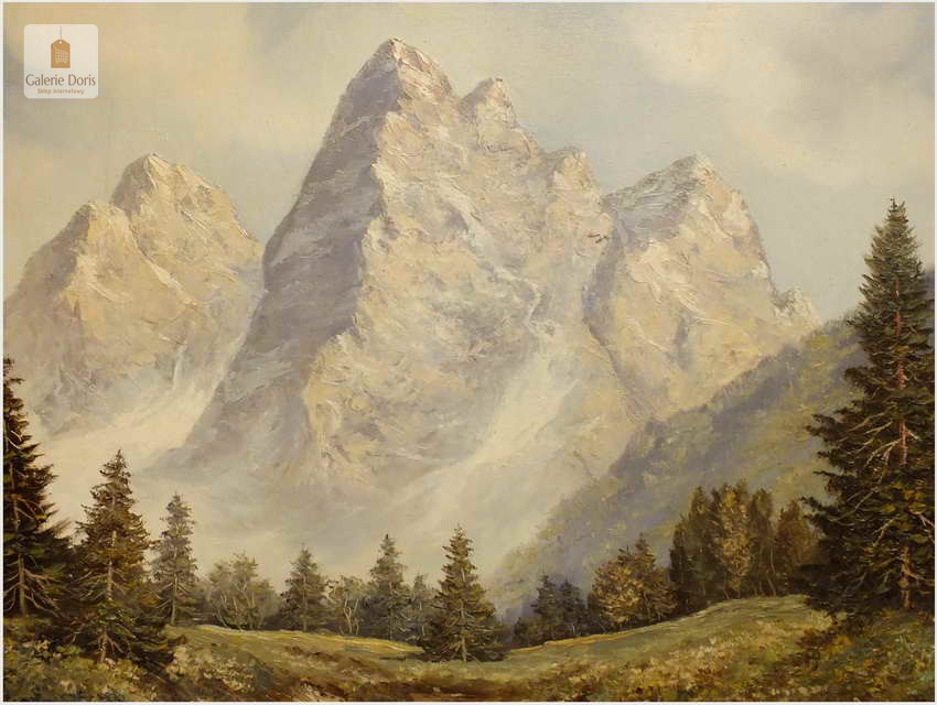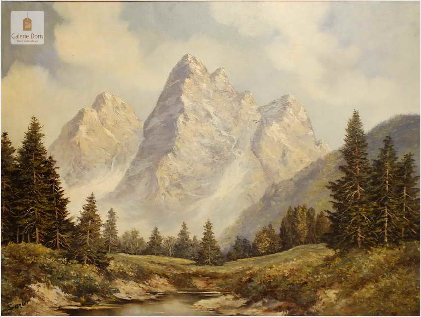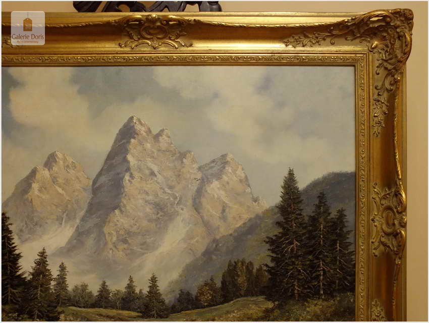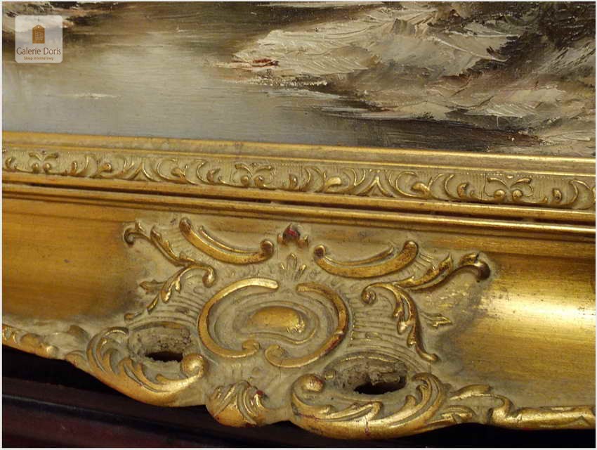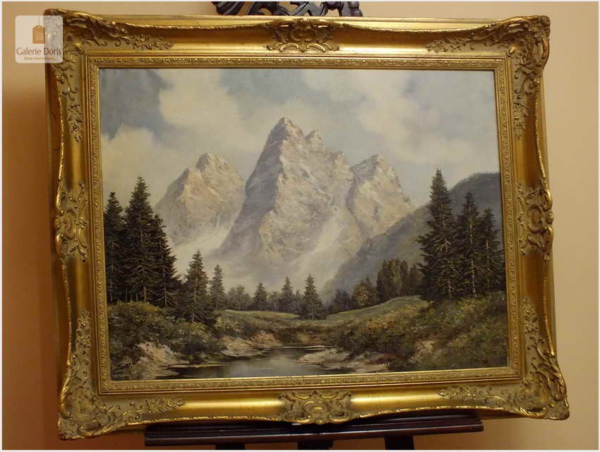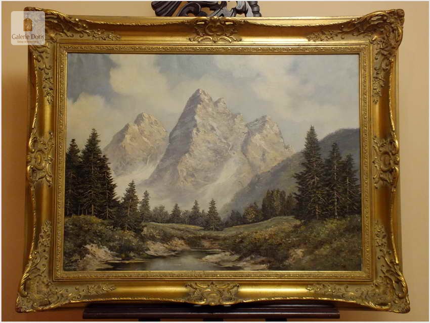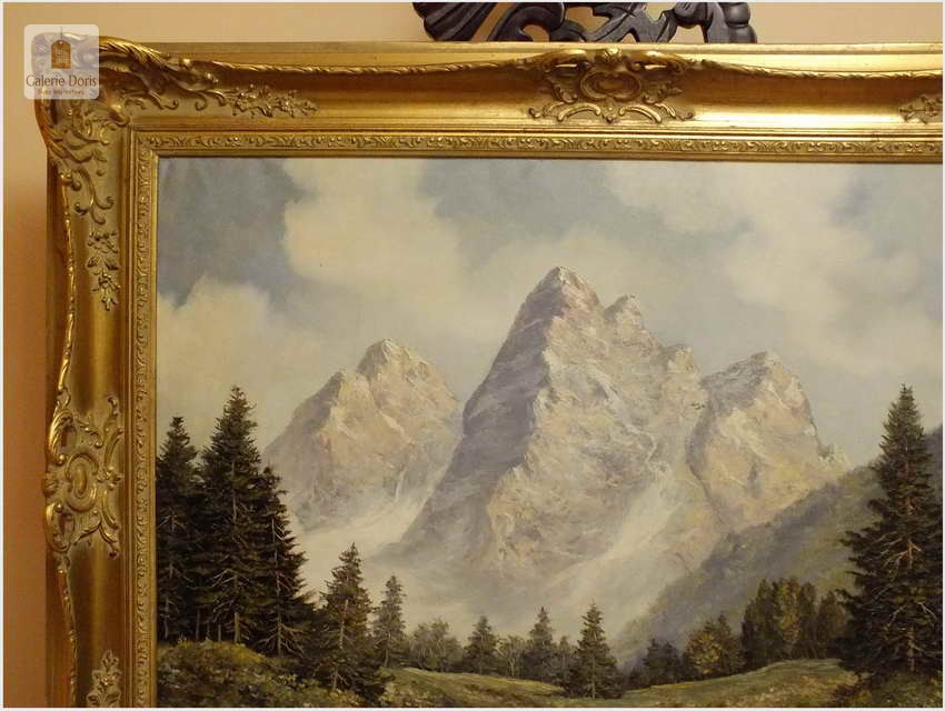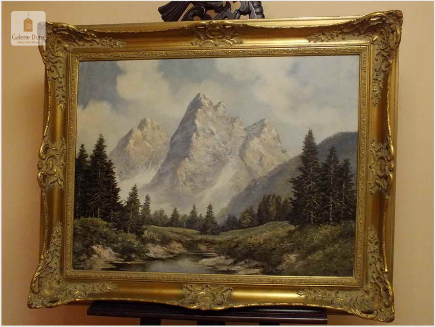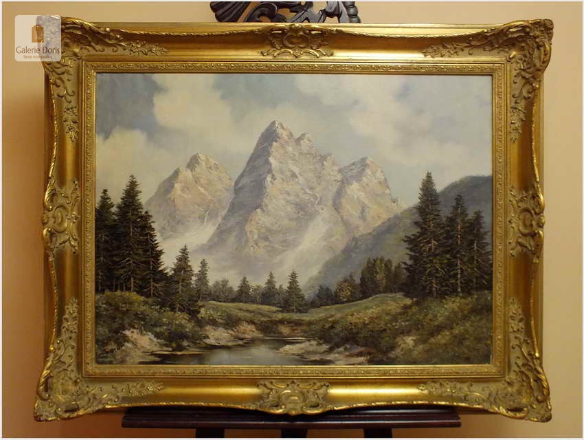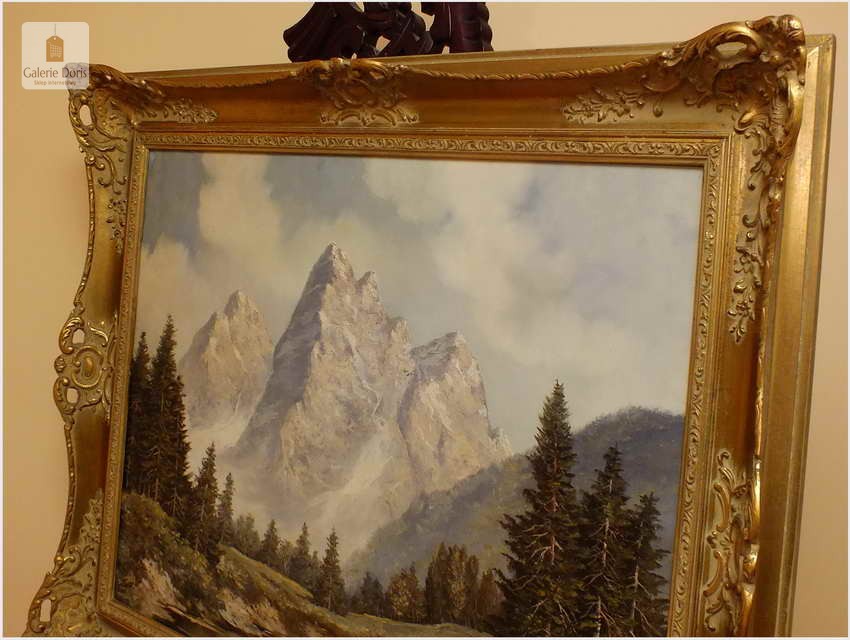 Polecamy ciekawe malarstwo niemieckie w barokowej drewnianej ramie. Proszę zwrócić uwagę na szczyty gór, widać kunszt i bardzo dobre posunięcia pędzla. Płótno idealne do dużych pomieszczeń- Polecamy!