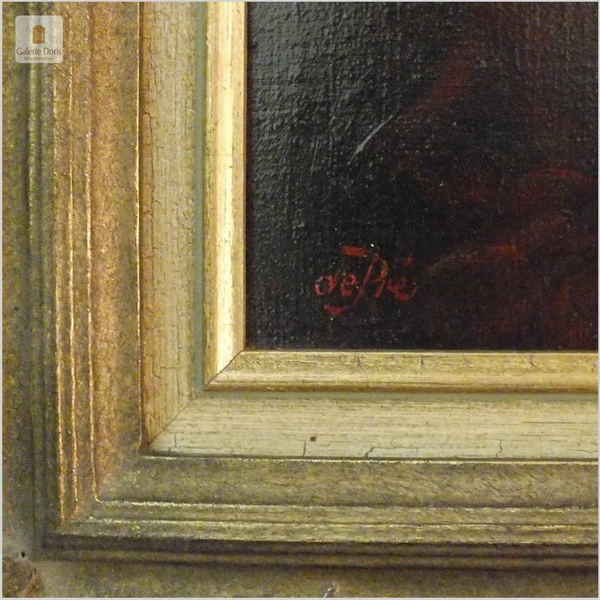 Polecamy stary obraz olejny pędzla znanego malarza niemieckiego Willi DePré.Ten subtelnie malowany obraz cechuje znakomita technika malarska. Obraz bezpośrednio nawiązuje do dzieła XVII-wiecznego malarstwa. Oprawę malowidła stanowi przestrzenna, gruba rama wykonana z drewna. Złoconą ramę bogato dekorują kunsztowne sztukaterie. Obraz sygnowany jest w lewym dolnym rogu ramy. Gwarantujemy profesjonalnie zabezpieczoną przesyłkę kurierem.