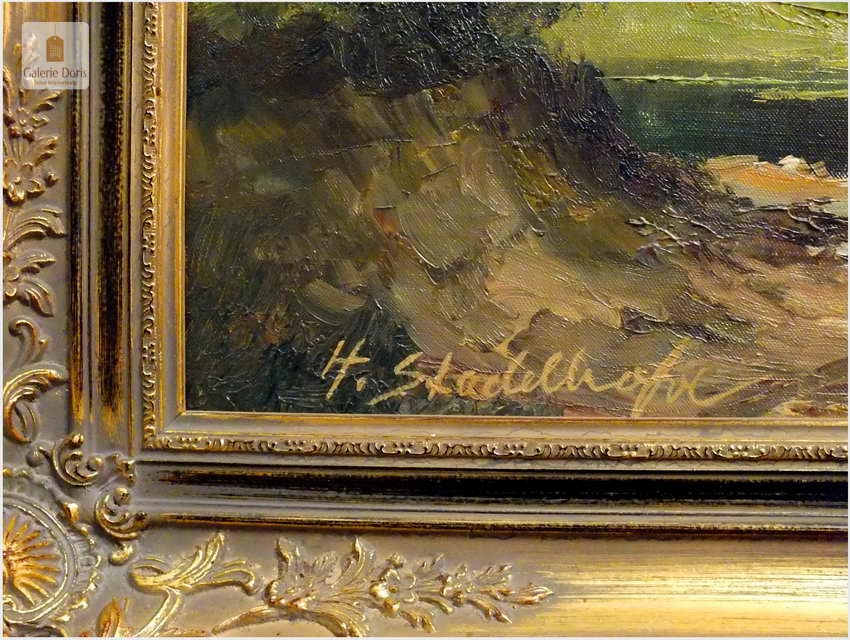 Helmut Stadelhofer, München - Aukcyjny malarz niemiecki, urodził się 15.06.1914 w Konstans Wollmatingen położonym nad jeziorem Bodensee. 1929-1932 odbywał staż w dekoracji i malowaniu fresków. 1932-1939 pracuje jako niezależny artysta. W roku 1939 Stadelhofer wciela się na ochotnika do wojska. W 1941 ulega poważnemu urazowi pod  Lwowem, w następstwie zwolniony z wojska. W 1943 rozpoczyna Szkołę Berlińską u prof. Harald Bengen. Następnie w 1944 Akademię Sztuk Pięknych w Monachium u Professor Max Meiershofer an der Kunstakademie in Muenchen, a także w szkole sztuki Heinza König. W 1945 roku po wojnie prywatnie uczęszczał na nowoczesne malarstwa u prof Juliusza Huether z Monachium. Wstąpił na członka Stowarzyszenia Zawodowego Sztuk Wizualnych. Helmut Stadelhofer był członkiem Stowarzyszenia zawodowych artystów plastyków. Miał wystawy w wielu galeriach w kraju i za granicą (Paryż, Londyn, Chicago, Los Angeles, Montreal, Nowy Jork), Wielka wystawa jego prac odbyła się w Hotel Hilton, New York w 1970 roku. Helmut Stadelhofer zmarł 10.06.1979 w Werona, Włochy..