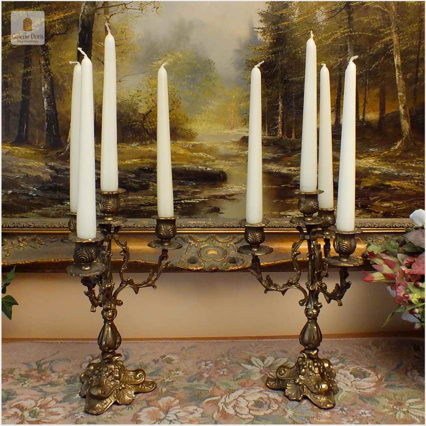 POLECAMY! STARY MOSIĘŻNY KOMPLET SECESYJNYCH ŚWIECZNIKÓW 2SZT