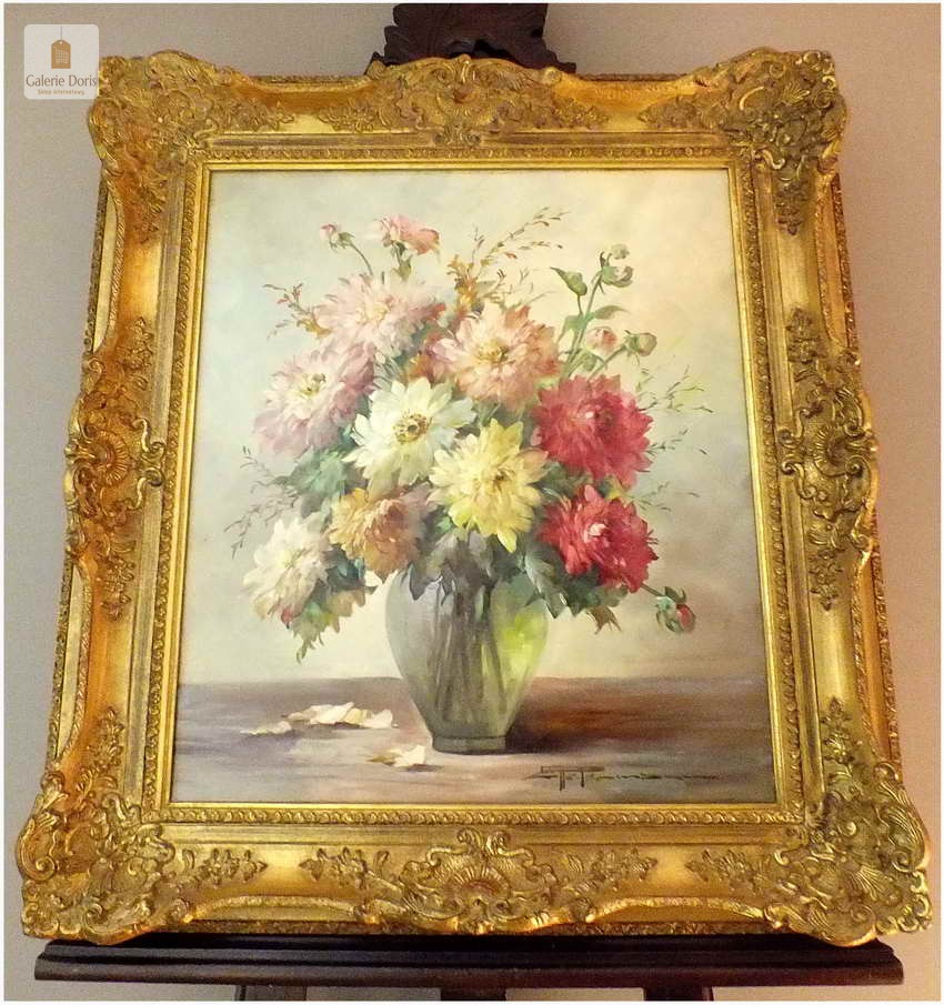 Proponujemy Państwu dobrą pracę olejną, niemieckiej malarki martwych natur. Hedwig Petermann to malarka, która głównym tematem malarskim jaki uprawiała były subtelne a zarazem piękne kompozycje kwiatowe. Uczennica Wilhelma Ecksteina w Düsseldorfie. Malowała martwe natury z owocami i kwiatami, które wyróżniają się dobrą kompozycją, szlachetnym kolorytem, miękkością modelunku i łagodnym nastrojem.