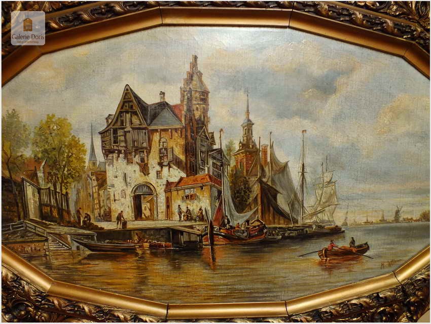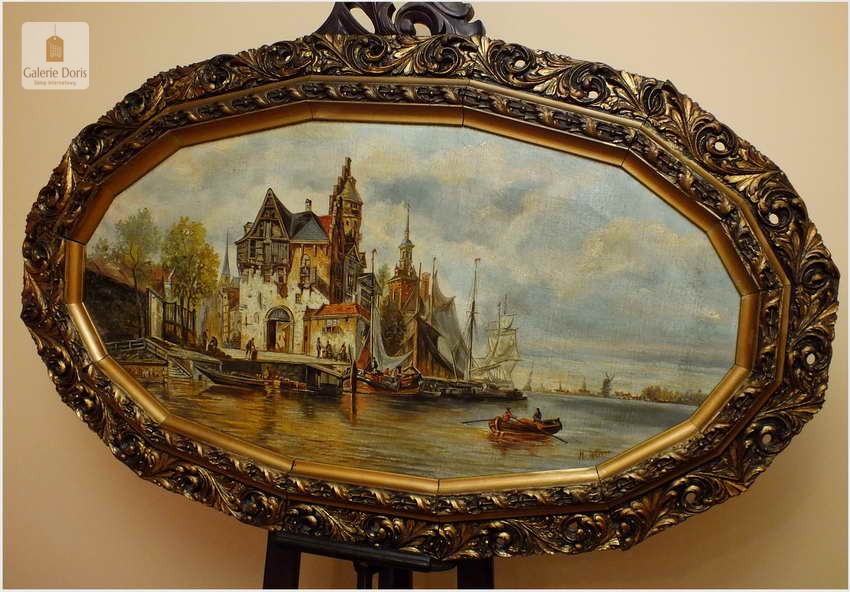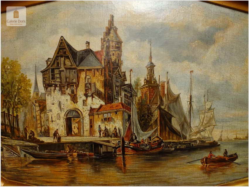 POLECAMY! WIDOK NA HOLENDERSKIE NABRZEŻE – WERNER HERMANN 1816-1905, DÜSSELDORF
