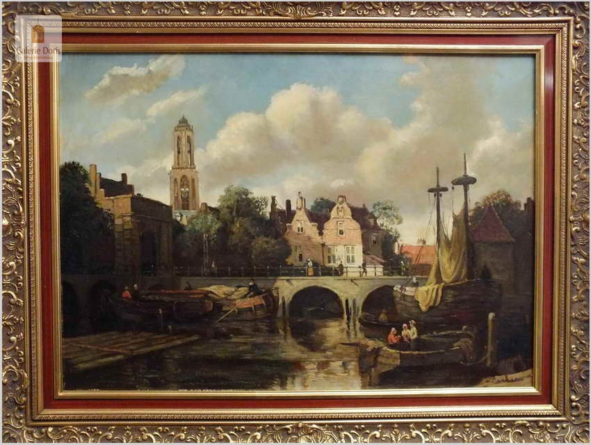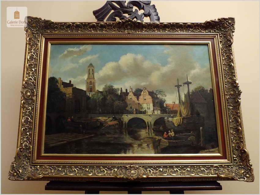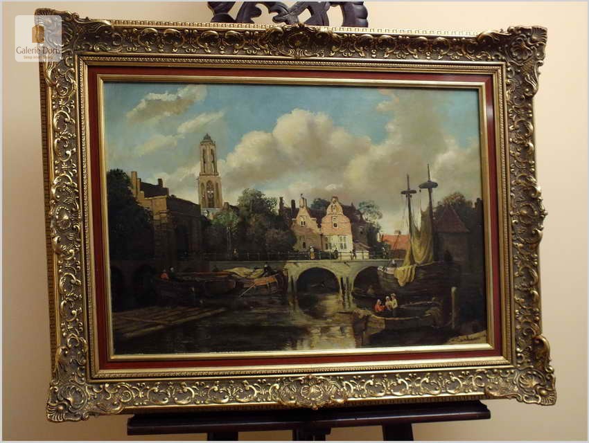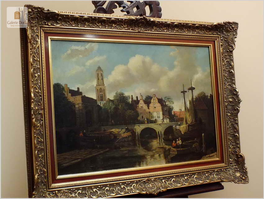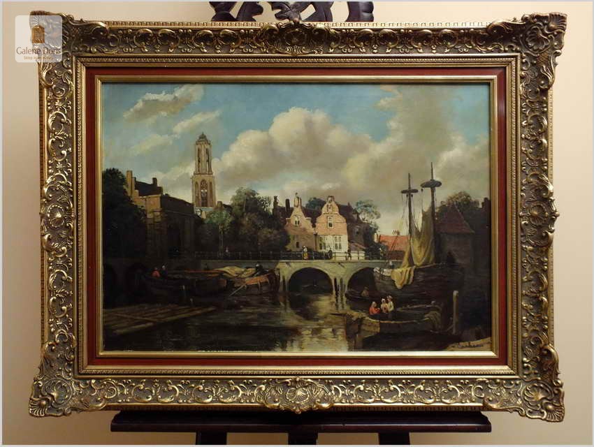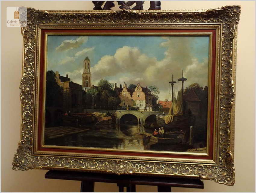 Obraz jest nastrojowym pejzażem, malowanym w oparciu o klasykę holenderskiego malarstwa XVIII wieku. Malarz ukazał nam kanały Amsterdamu. Polecamy nastrojowy pejzaż o formacie 70x50. Umiejętnie powieszony, będzie zdobić ściany pomieszczeń o dowolnym przeznaczeniu. Obraz potrafi "ożywić" nawet najbardziej nudne i pospolite wnętrze, nadając mu niepowtarzalnego charakteru. Płótno bez uszkodzeń, sygnowany - Polecamy!