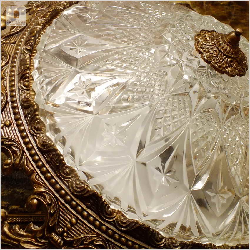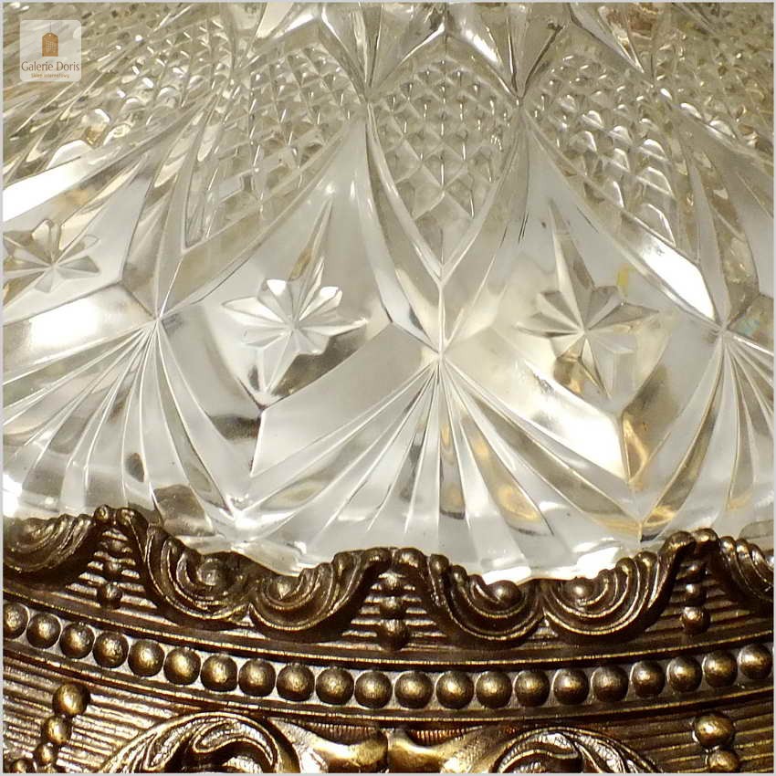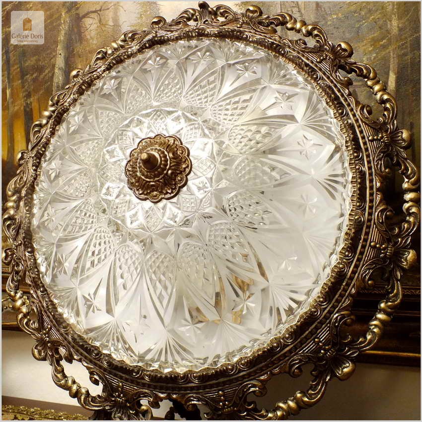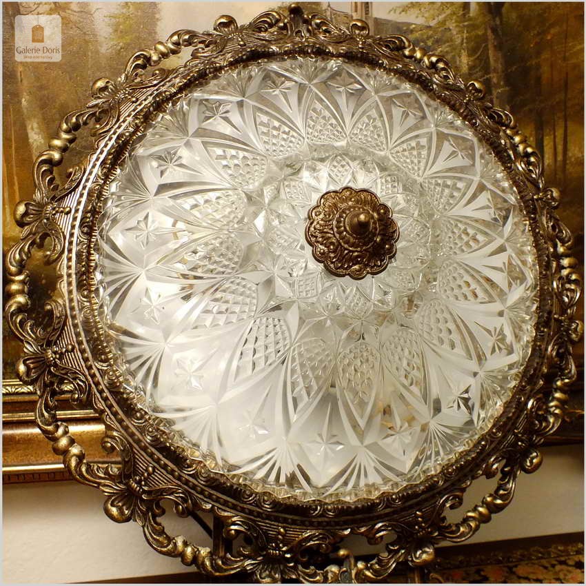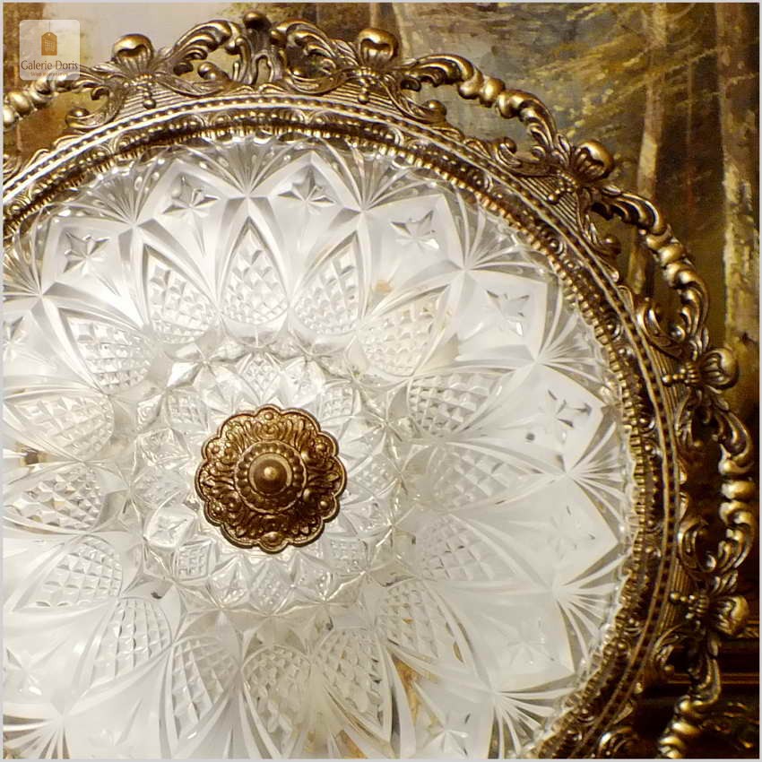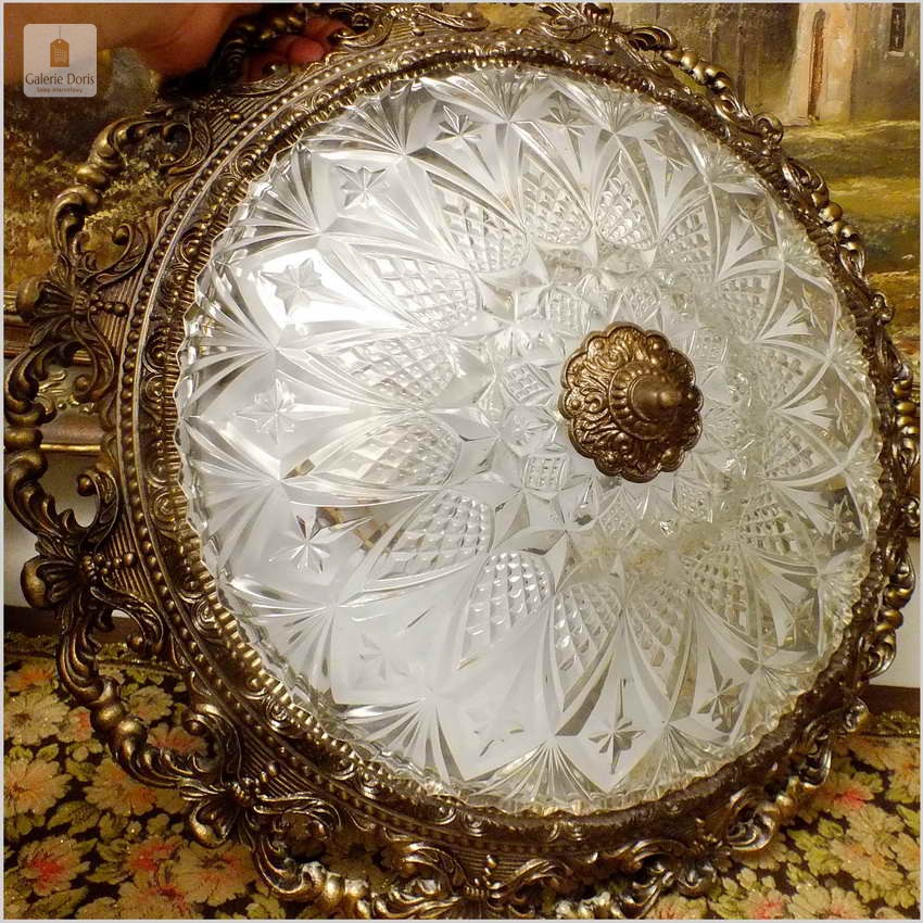 POLECAMY! WYJĄTKOWY PAŁACOWY DUŻY MOSIĘŻNY PLAFON Z KRYSZTAŁOWYM SZKŁEM NA TRZY ŻARÓWKI 50 CM