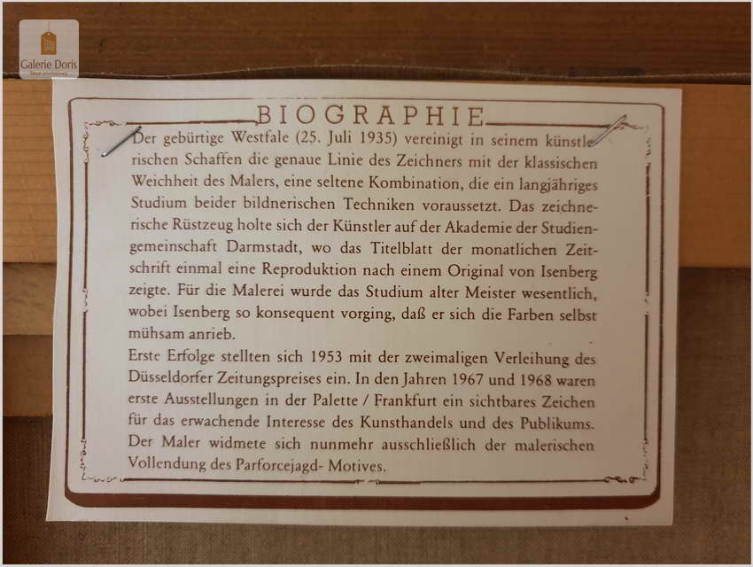Biografia, (skrót) Herbert Isenberg, ur.25.07.1930 w Westfalii, gdzie uczęszczał do Akademii Sztuk Pięknych w Darmstadt. Malarz zakochany w stylu rokoko