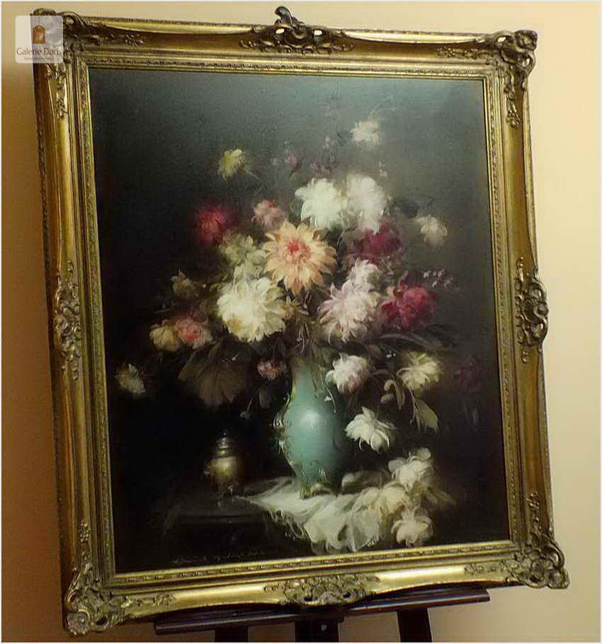 Pałacowe malarstwo, kwiaty w wazonie - Kömpöczy Balogh Endre (Hungary,1911-1977) 120cm x 100cm