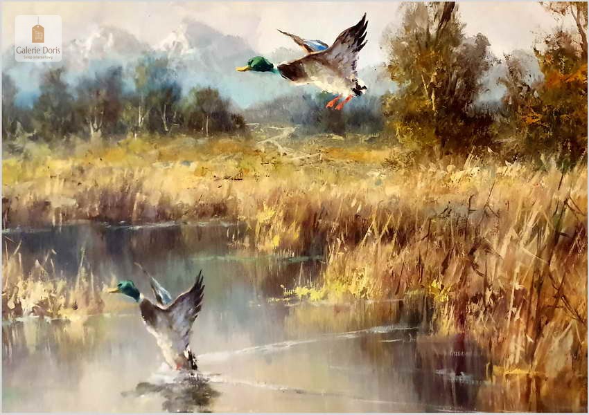 Panoramiczny obraz! Odlatujące kaczki - Horst Hartung (*1921 Berlin)