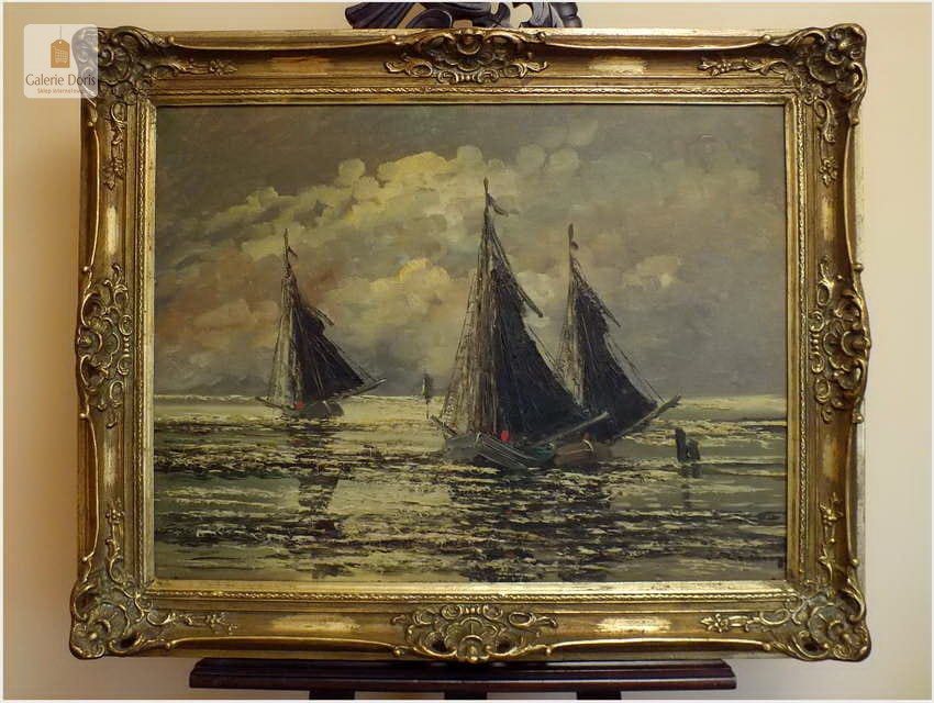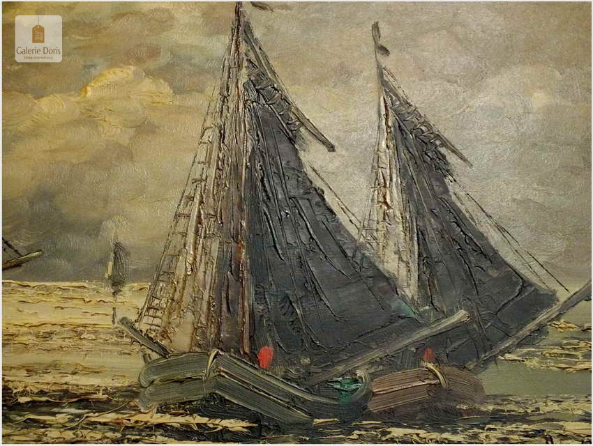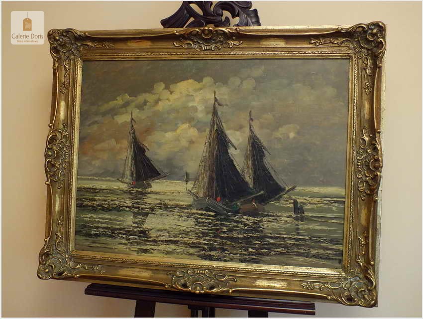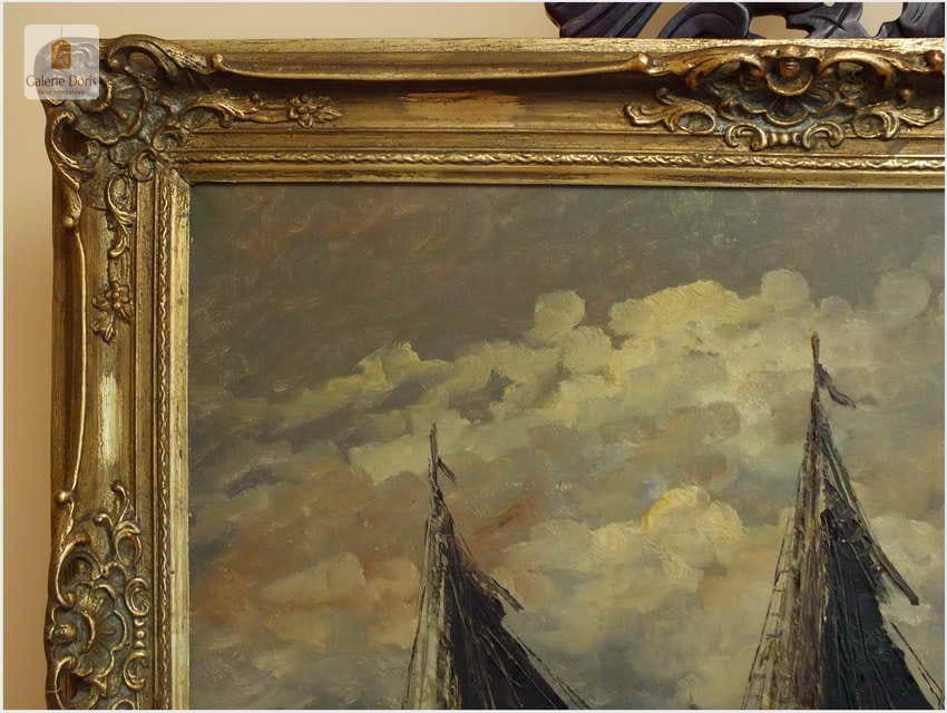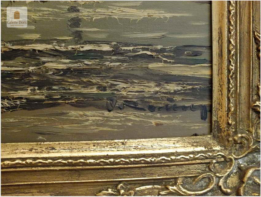 Jean Coune malował różnego rodzaju motywy. W jego twórczości przeważają jednak motywy marynistyczne. Jean Coune, uczeń prof. Helmuta Lieseganga, technika malarska pędzel, szpachla. Jego styl malarski wyróżnia się przede wszystkim zastosowaniem techniki szpachlowej, którą uwypukla bardzo grubo kładzioną fakturę płótna. Jego prace często są spotykane na europejskich aukcjach. Ten obraz jest jego bardzo dobrą pracą z późniejszych lat jego twórczości. Piękną dodatkową ozdobą jest bardzo bogata rama o konstrukcji drewnianej zdobiona sztukaterią w stanie perfekcyjnym. Całość prezentuje się wspaniale. Będzie z pewnością pięknym eksponatem w Państwa kolekcji, domu. Wraz z obrazem idzie gratis ta piękna rama i świadectwo naszej Galerii. Obraz z ramą w stanie bardzo dobrym, bez uszkodzeń!