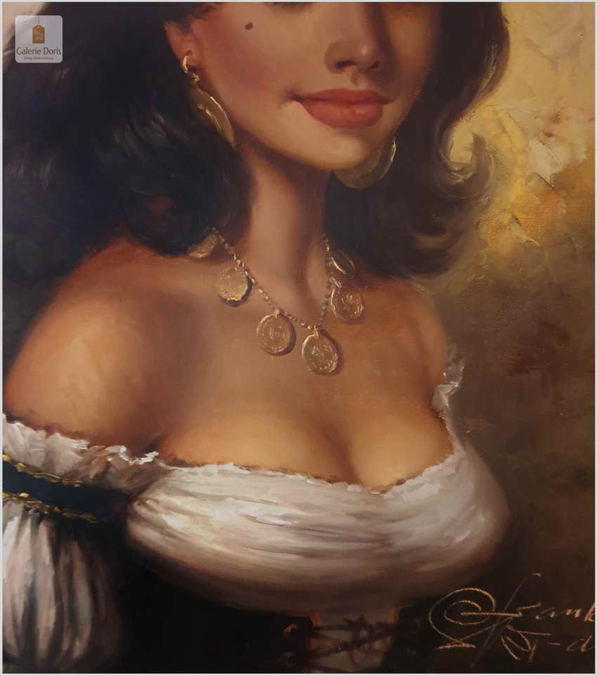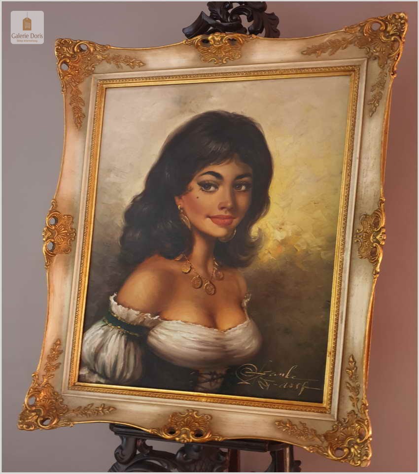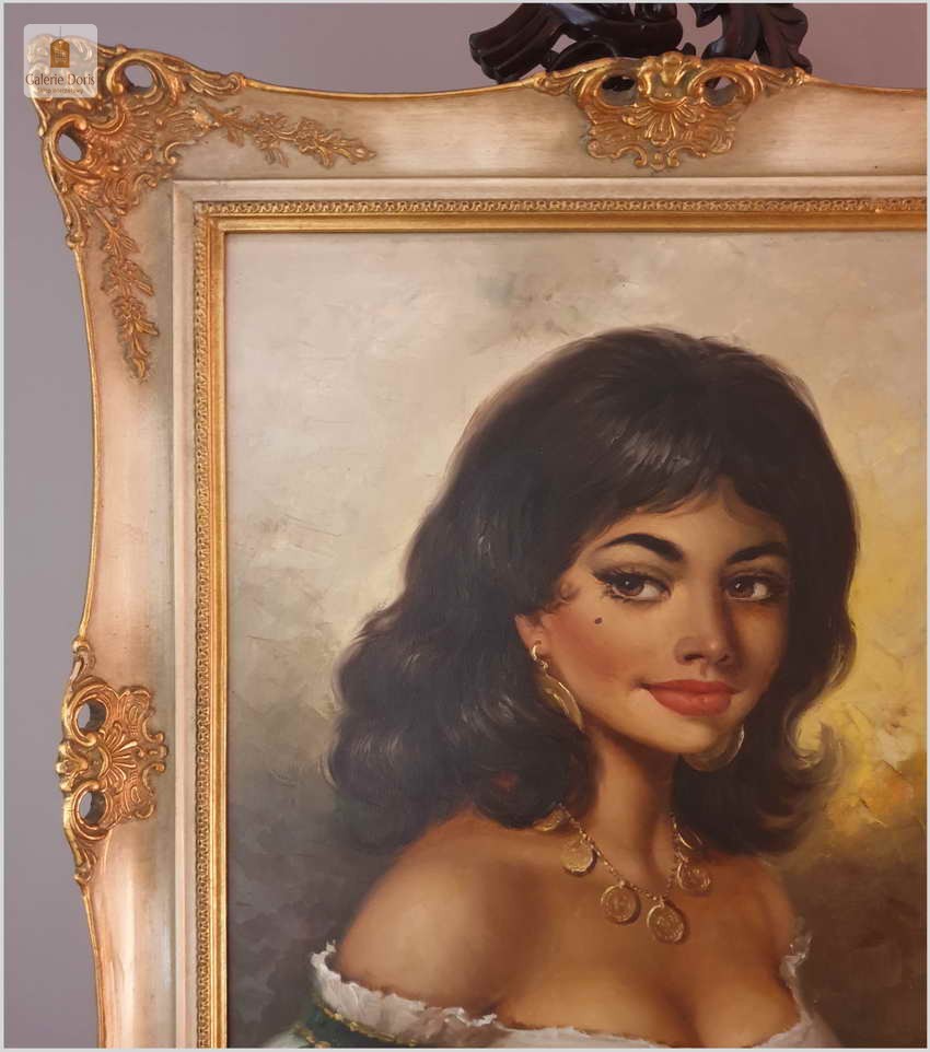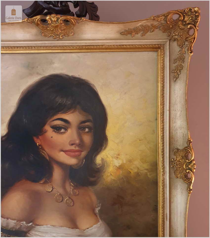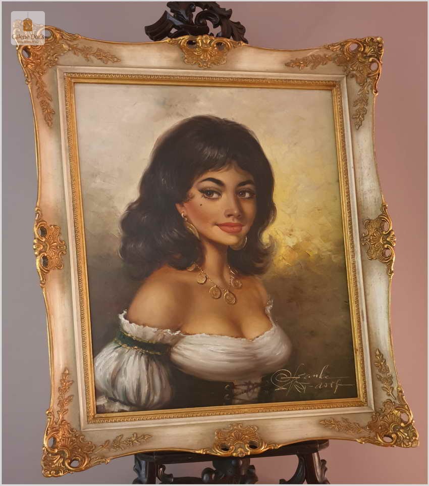 Piękny portret hiszpanki malowany olejem na płótnie. Sygnowany w dolnym rogu. Polecamy!