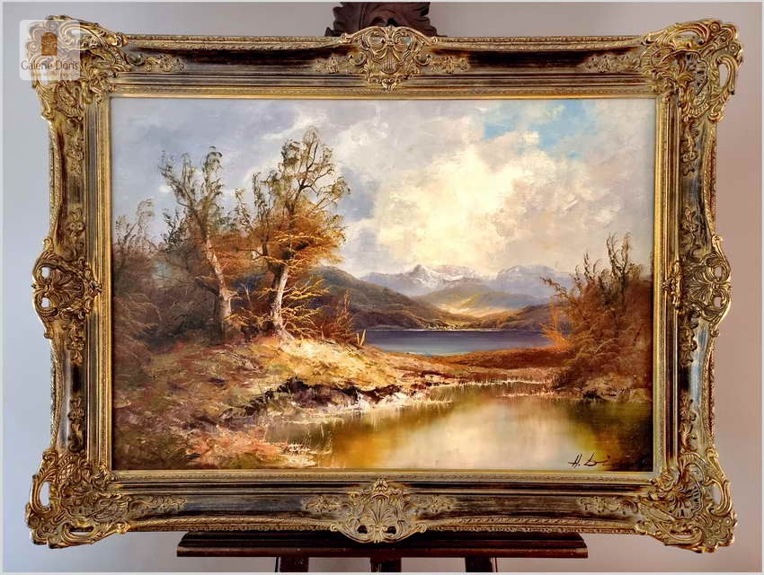 Obraz powinien być oknem na świat. Praktycznie to okno się otwiera, bowiem stojąc przed obrazem, nasz wzrok ma podróżować w głąb, odkrywać dalekie przestrzenie. Natura w epoce romantyzmu postrzegana była jako byt idealny, wolny od działania czasu, wieczny. Panują w niej doskonałe pierwotne prawa i dlatego jest wolna, niezależna, nieujarzmiona i potężna. Stąd wziął się specyficzny pejzaż romantyczny. Stan obrazu idealny, gotowy do powieszenia – Polecamy!