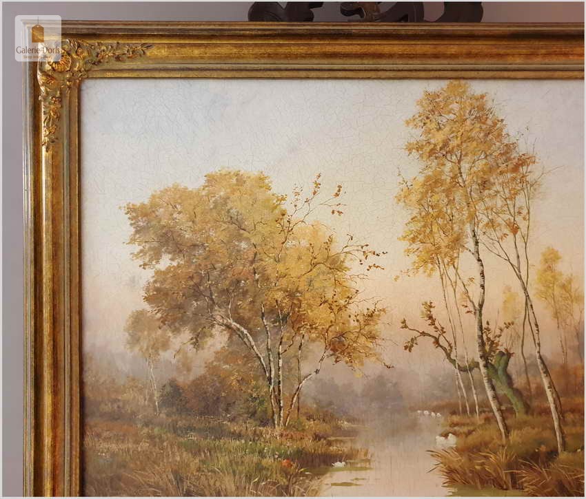 Na obrazie malarz ukazał malowniczo położony dolinę z rozlewiskiem wodnym, rozległe mokradła. Rozlewisko tworzy najbardziej romantyczne i urokliwe miejsce na ziemi. Ten spokojny krajobraz pozwala niemalże wychylić się przez okno przyrody. Polecamy!
