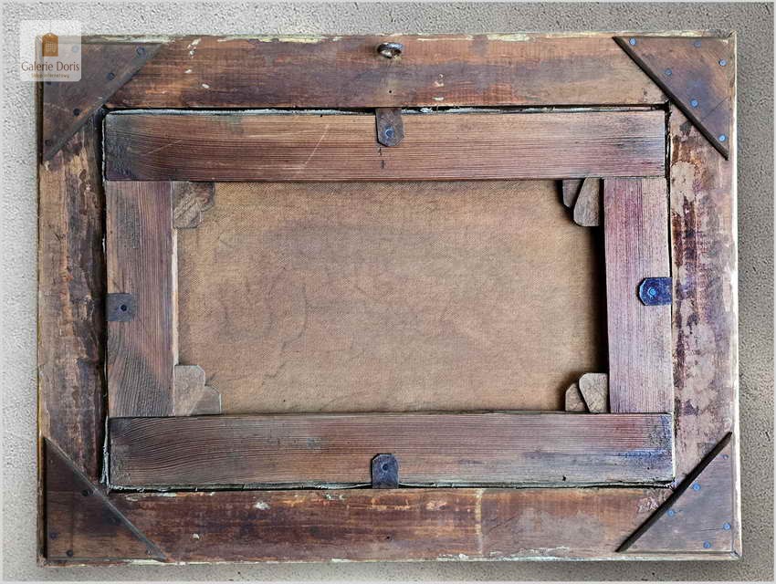 • Rama obrazu: Wybitnie dobrana, okazała złota rama o bogatej ornamentyce podkreśla prestiżowy charakter dzieła, tworząc z nim harmonijną całość godną najlepszych kolekcji.