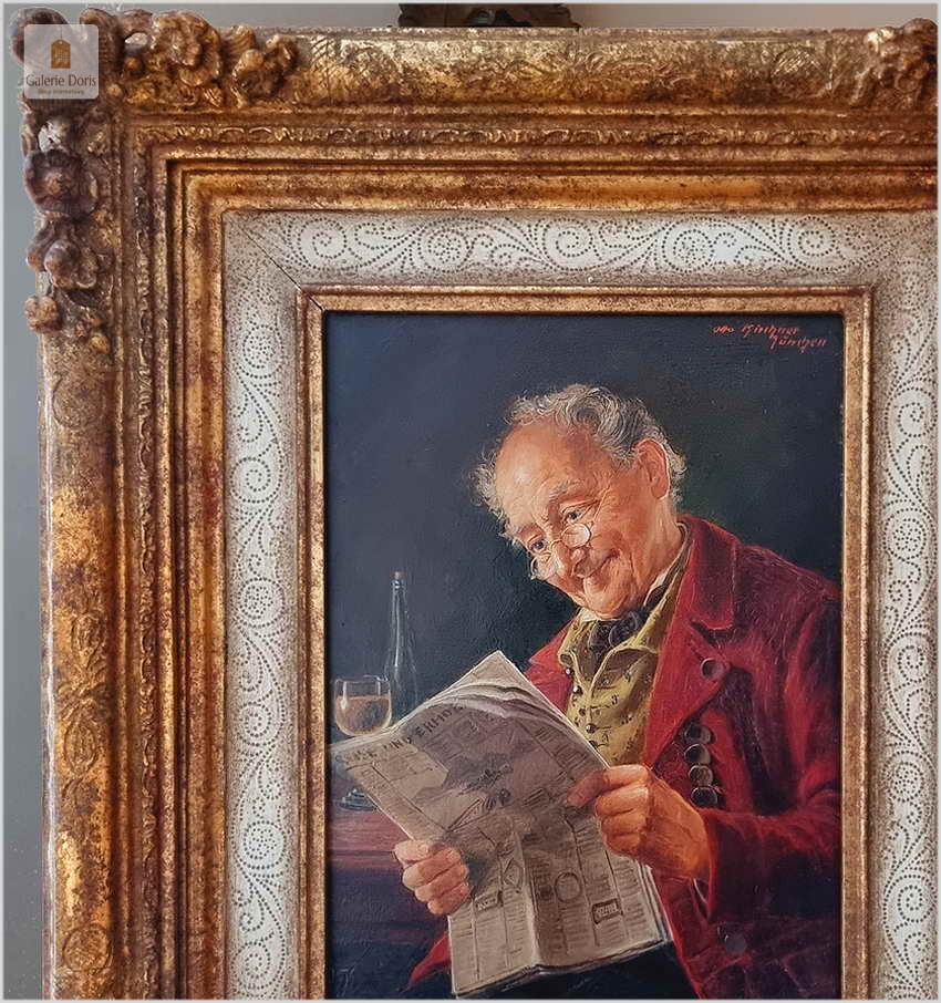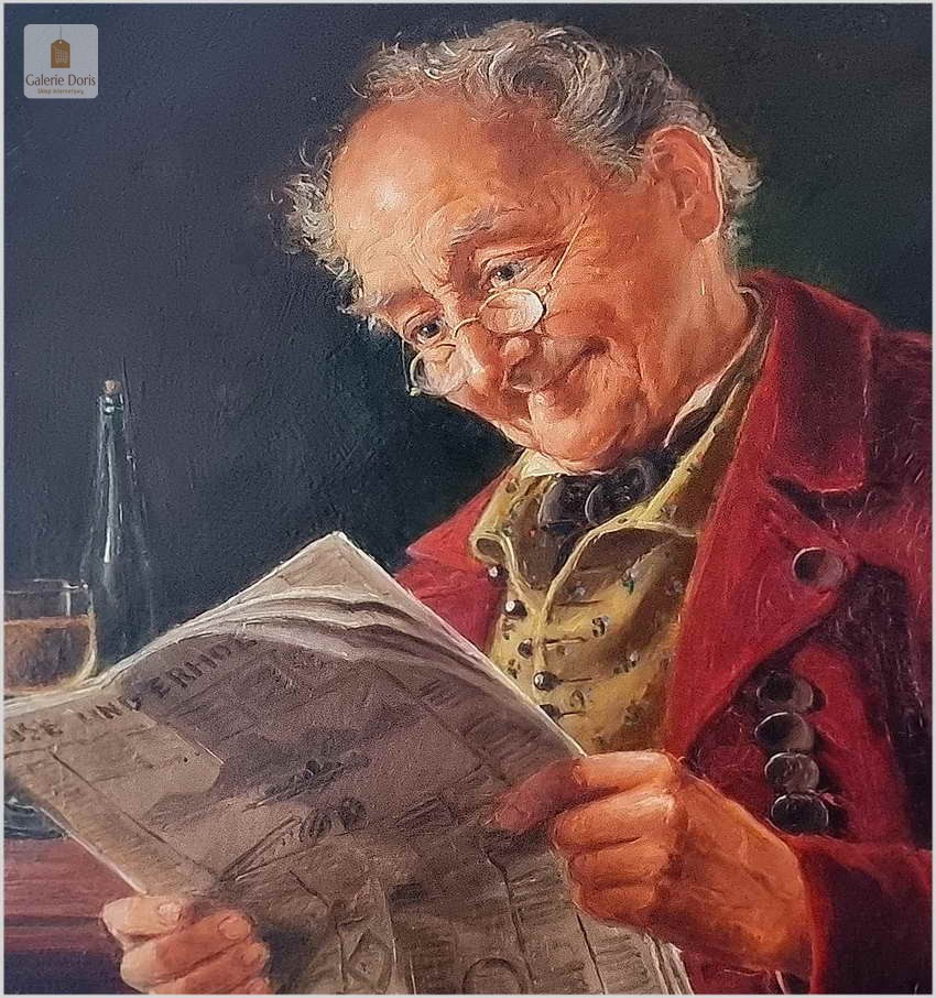 Przedwojenny obraz olejny - Mężczyzna czytający gazetę - Otto Kirchner *1887