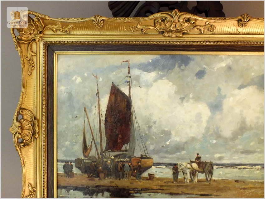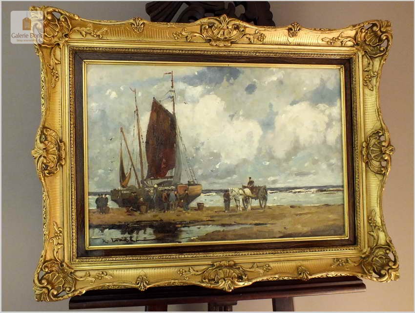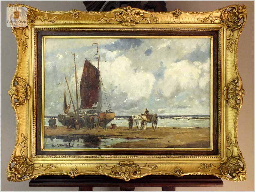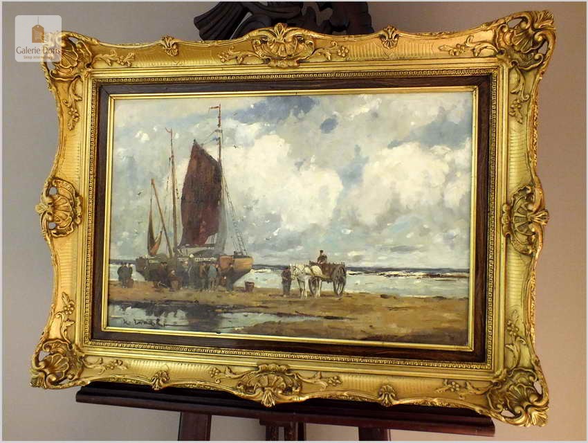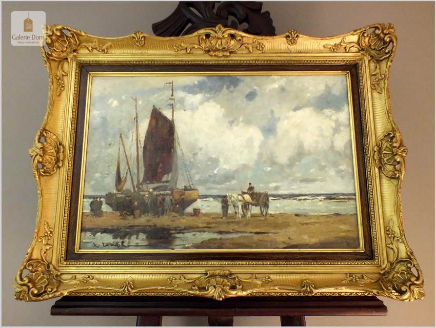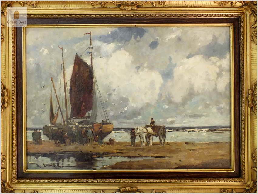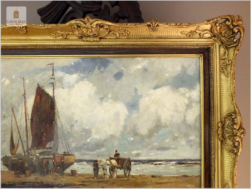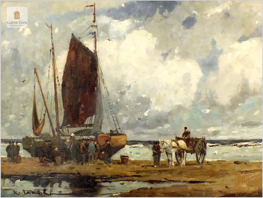 RARYTAS AUKCYJNY! KUTRY PRZY BRZEGU, ROZŁADUNEK KRABÓW - KARL MOHR (DÜSSELDORF 1922-2013)