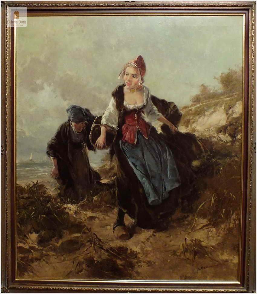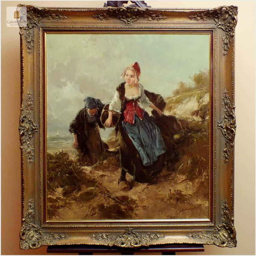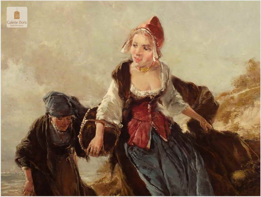 RARYTAS! HOLENDERSKIE KOBIETY NA WYDMACH MORSKICH - DICKMEIS GERHARD (Heinsberg 1918 – 1978 Jülich)