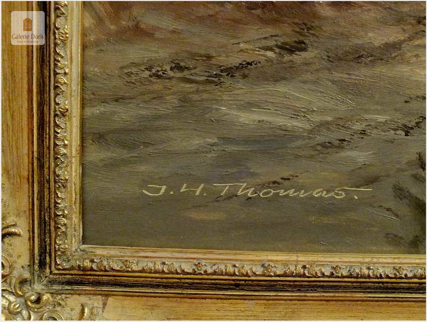 Niemiecki malarz J.H.Thomas ur. Dresden, tam też studiował. Jego prace są wystawiane w galeriach Monachium, Frankfurcie, Hamburgu i wielu innych galeriach europy. Wspaniale dobrana paleta barw, precyzja, dbałość o szczegóły, przepięknie dobrane światło i cienie czyni ten obraz wyjątkowym i doskonałym dziełem malarskim. Jest to prawdziwa okazja by nabyć tak wspaniałe malarstwo. Obraz posiada sygnaturę w lewym dolnym rogu. Stan obrazu: płótno ,rama w stanie kolekcjonerskim – Ideał!