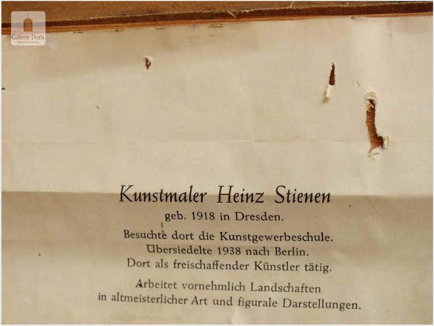 Karl Heinz Stienen (1918-2002), niemiecki malarz impresjonista, urodził się w Dreźnie. Uprawiał malarstwo krajobrazu w stylu romantycznym. Ukończył Drezdeńską Szkołę Sztuki i Rzemiosła. W roku 1938 przeniósł się do Berlina, gdzie działał jako niezależny artysta. Malował głównie romantyczne krajobrazy z postaciami w tle. Jego zimowe krajobrazy osiągnęły szczyt popularności, zyskały sławę ze stylem malarzy w Dusseldorfie i Monachium na równi jak malarze w XIX wieku. Hein Stienen ustanowił nowy poziom obrazów zimowych tzw. winterscape paintings in the mid-20th century. Jego prace znajdują się w muzeum w Dreźnie oraz w wielu prywatnych kolekcjach w Niemczech i na świecie. Malarstwo które uprawiał jest poszukiwane na rynku dzieł sztuki.