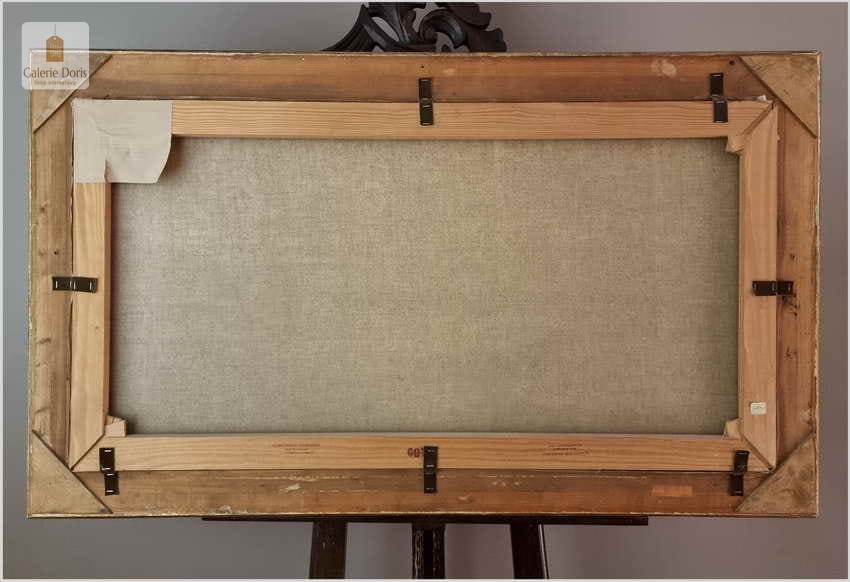 Niezwykle piękny, romantyczny krajobraz. Ten relaksujący duży pejzaż odznacza się delikatnie prowadzonymi liniami pędzla i wysmakowaną grą barw. Cechuje go świetna technika malarska. Obraz oprawiony jest w przestrzenną, grubą ramę wykonaną z drewna. Złoconą ramę ozdabiają misterne sztukaterie. Stan obrazu oraz ramy b.dobry - do obrazu dołączamy certyfikat - Polecamy!.