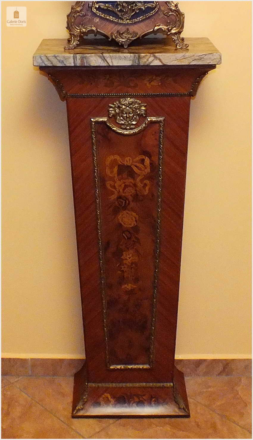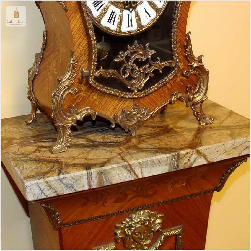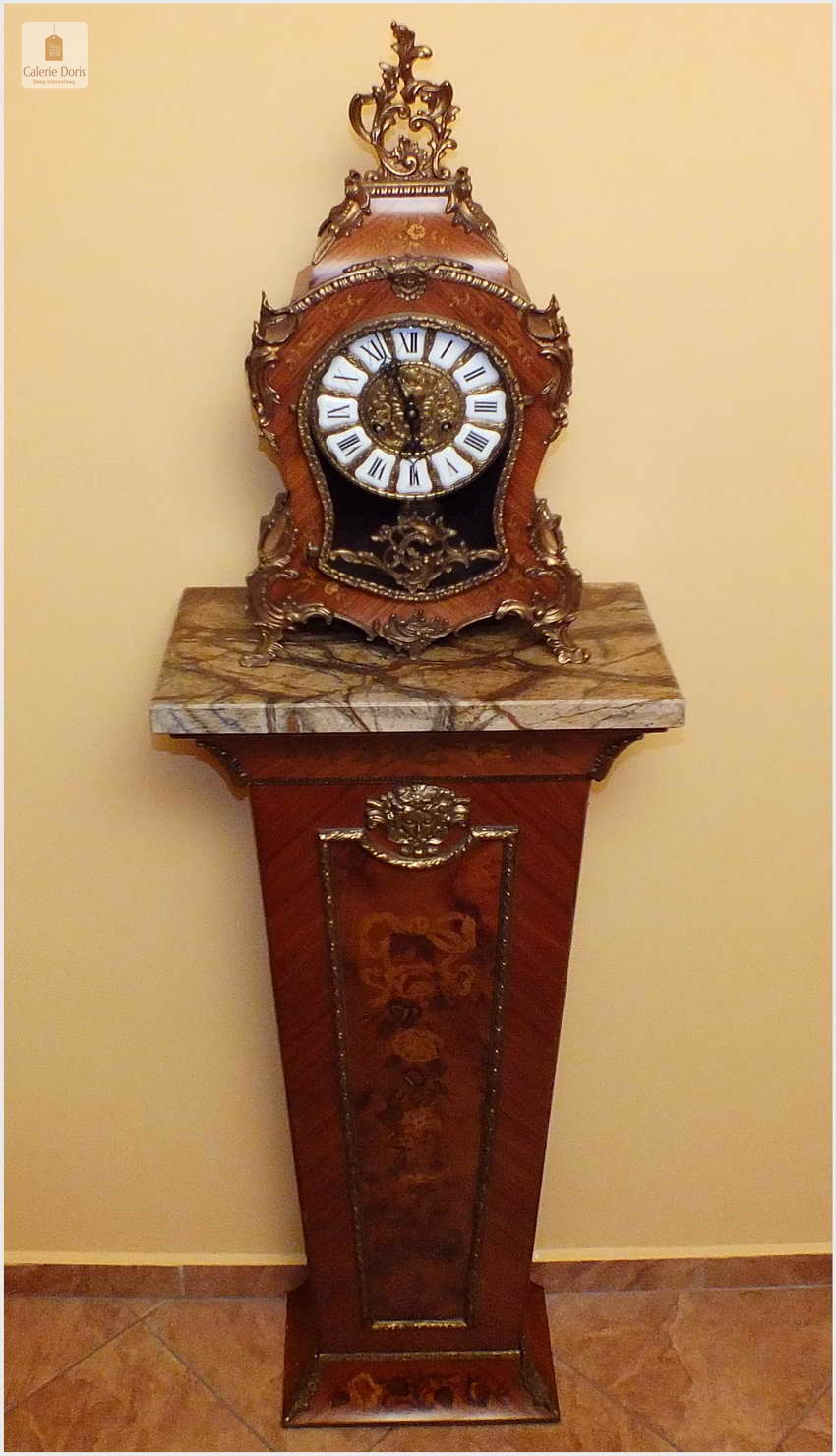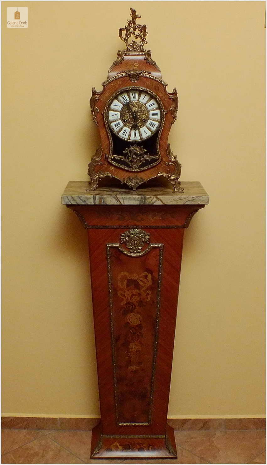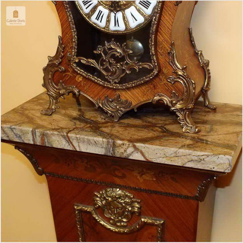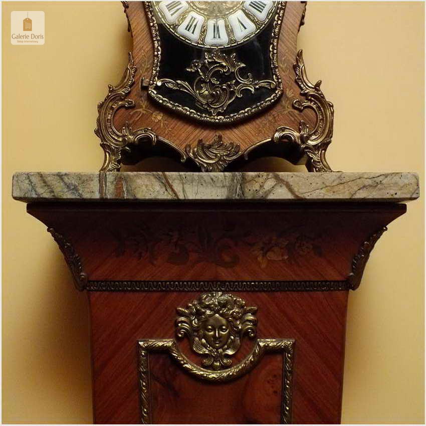 STOJĄCY ZEGAR W STYLU BOULLE Z KONSOLĄ - INTARSJA, BRĄZ, MARMUR 170CM.