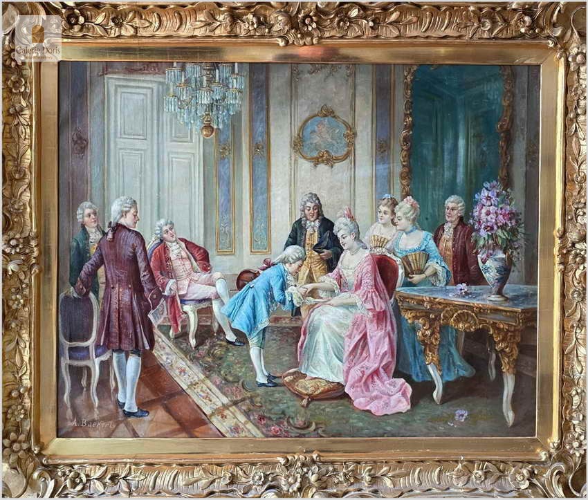 Biografia, (skrót) A. Baekert to malarz z XIX wieku, specjalizujący się w eleganckich scenach rokokowych lub salonowych. Charakteryzował się wysokim poziomem rzemiosła artystycznego i mógł pracować na zlecenie dla dworów.