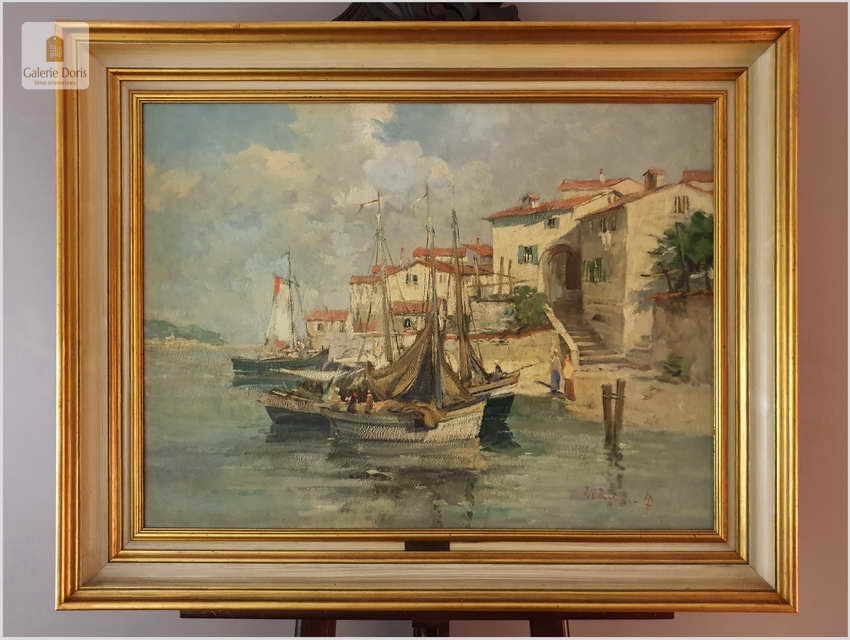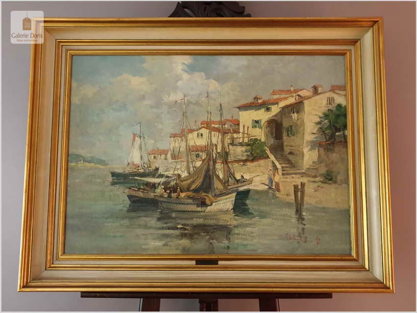 Śródziemnomorskie miasteczko z łodziami - Wilhelm Thelen (1917-1985)
