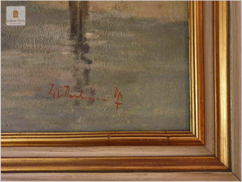 Wspaniała technicznie praca malarska znanego niemieckiego malarza. Obraz sygnowany oraz dodatkowo mosiężna grawerka z nazwiskiem malarza. Całości dopełnia gruba i szeroka rama w kolorze ecru-złoto. Polecamy wytrawnym znawcom malarstwa olejnego.