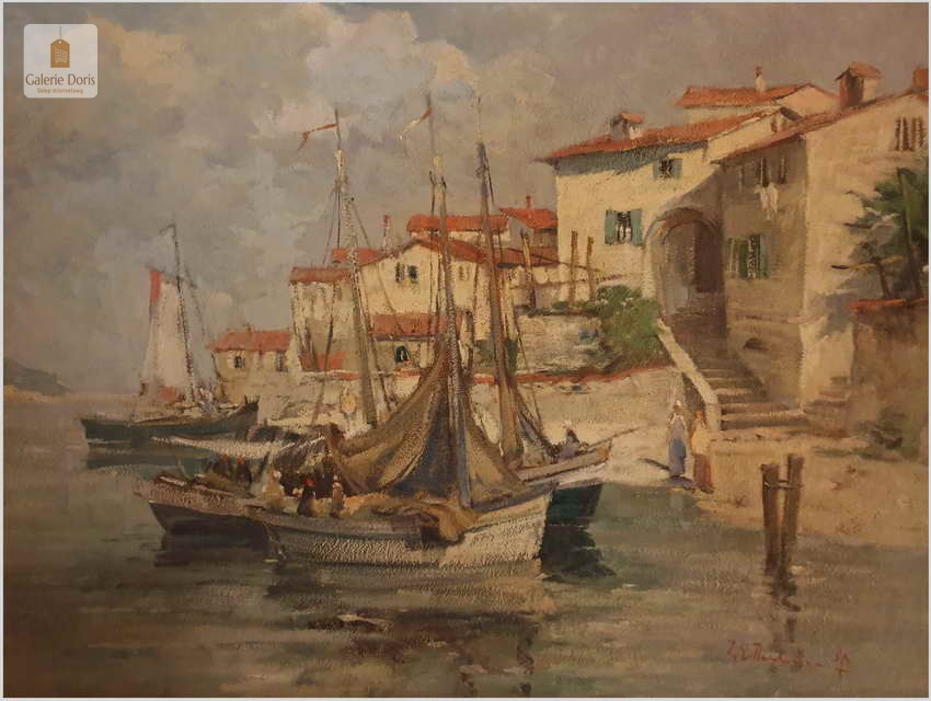 Wilhelm Thelen (Oberhausen 1917-1985 Düsseldorf) Studiował w Kunst Akademie Düsseldorf pod kierunkiem Prof. Schmurra oraz Heusera. Prywatne doskonalenie warsztatu u Prof. Jostrahna. Malarz pejzaży i figur, został dyrektorem oddzielnej szkoły malarstwa w Düsseldorfie "Mediterranes küstenstädtchen z Fischerbooten"