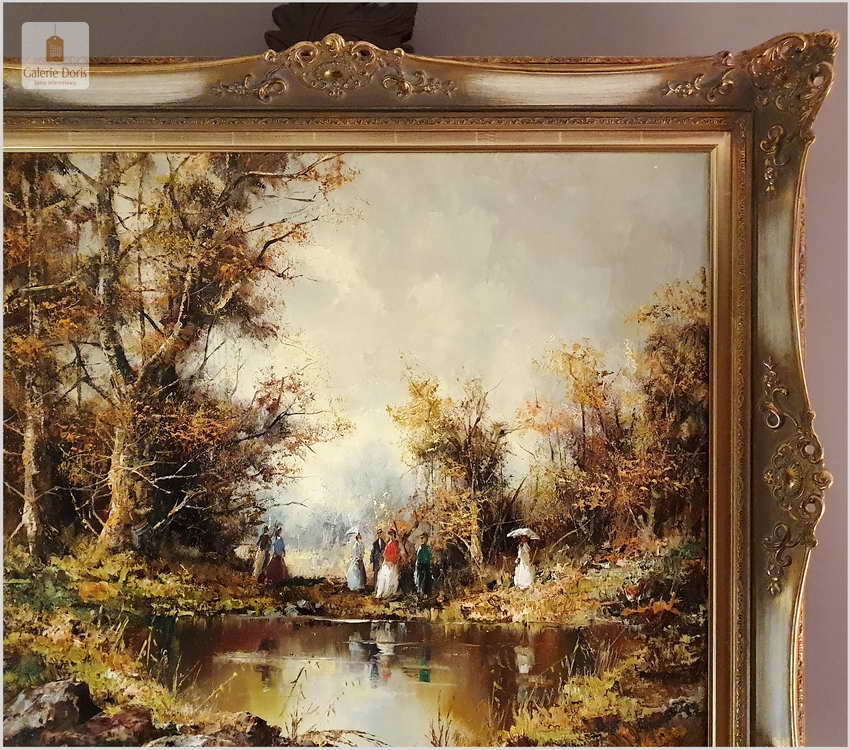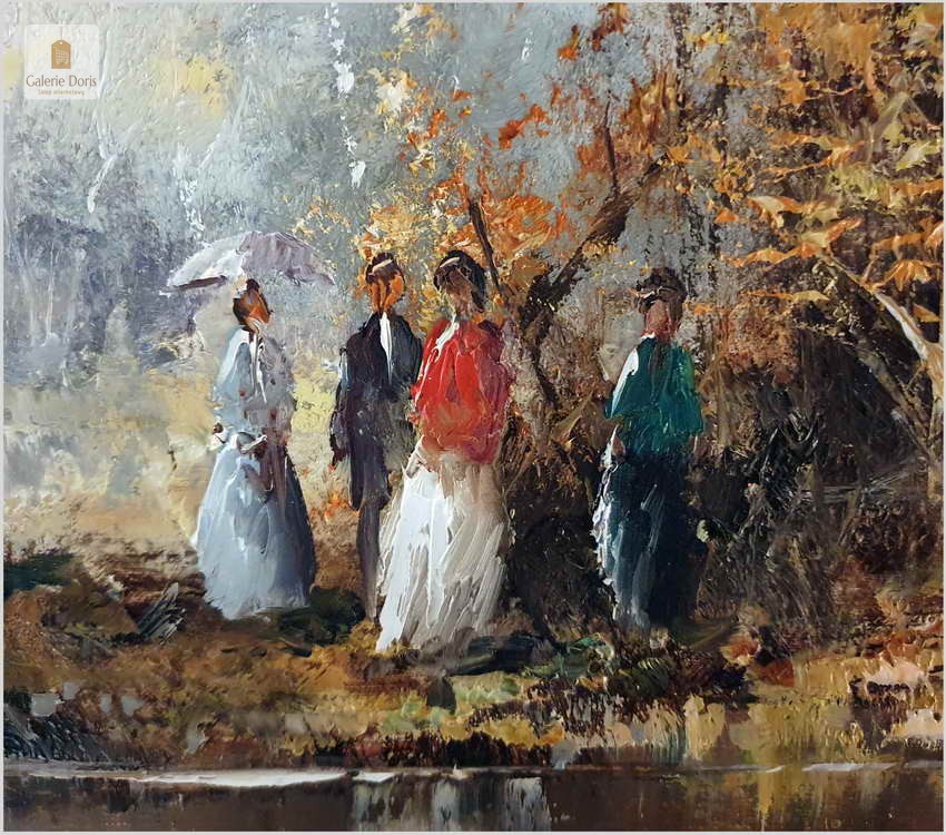Stary obraz olejny! Piknik w parku - Friedrich Karl Thauer (1924-2009)
