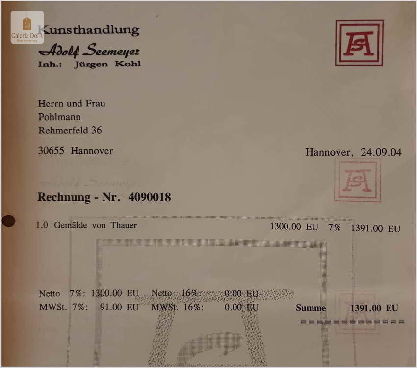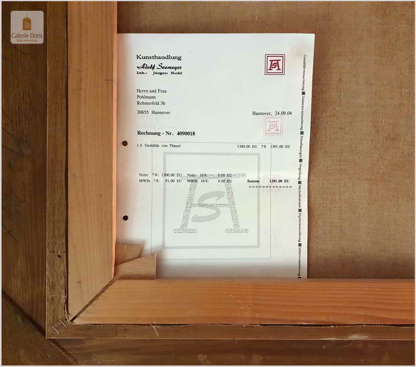Wraz z obrazem dołączamy certyfikat oryginalności obrazu oraz fakturę z 2004 roku. Obraz został sprzedany w 2004 roku za kwotę: 1391€. Warto policzyć sprzedajemy poniżej obecnej ceny zakupu. Polecamy!
